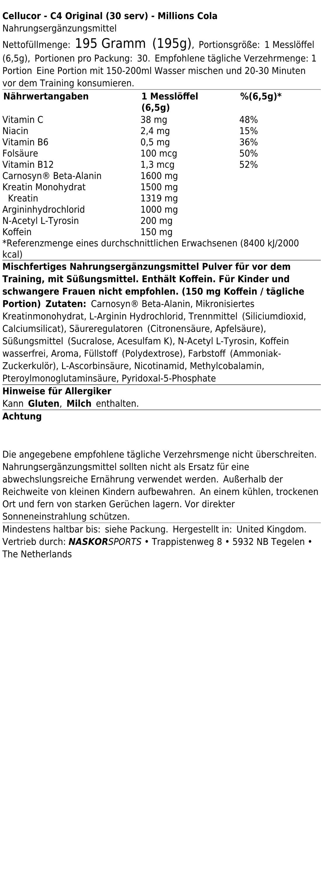 Cellucor Cellucor C4 Original (30 serv) Millions Cola