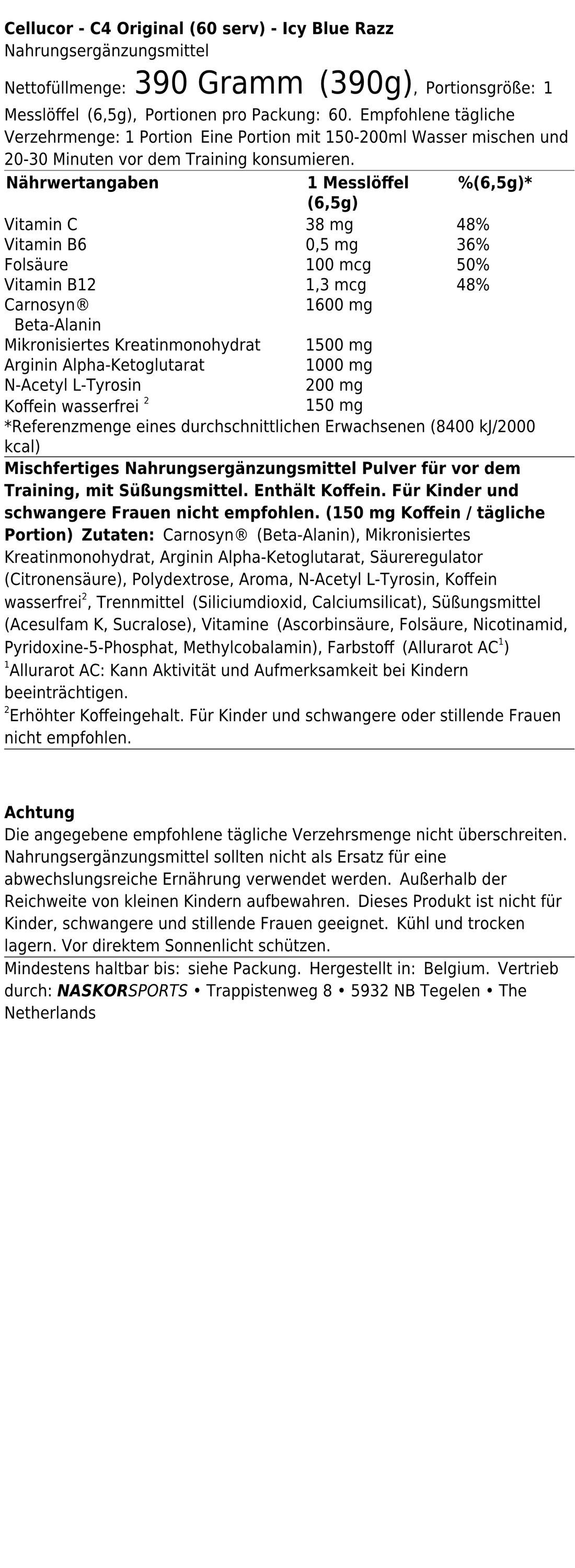 Cellucor Cellucor C4 Original (60 serv) Icy Blue Razz