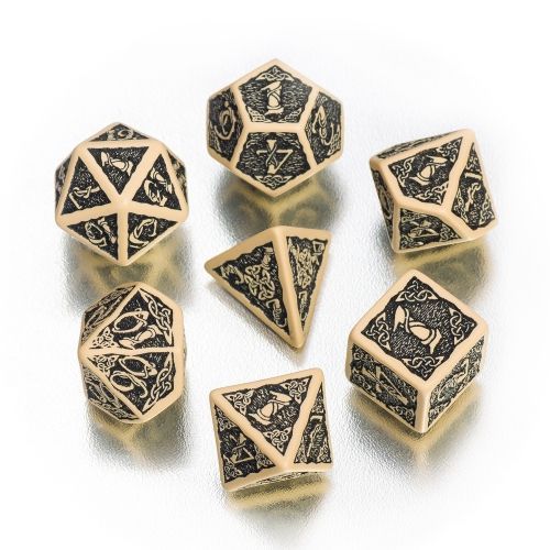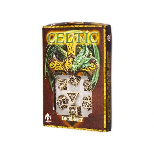 Q-Workshop Celtic 3D Revised Würfel-Set - 7 Stück - beige und schwarz