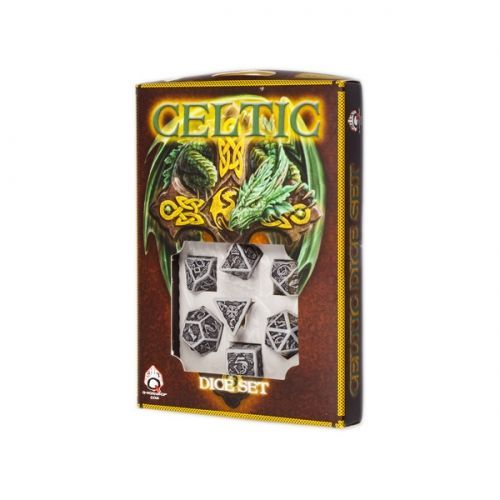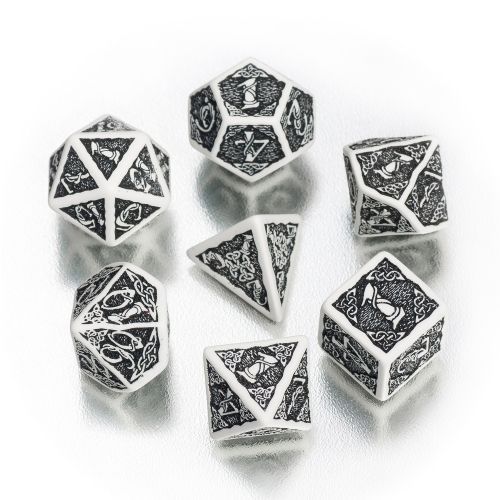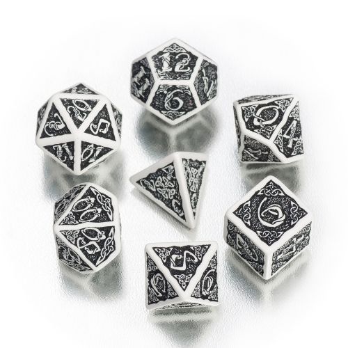 Q-Workshop Celtic 3D Revised Würfel-Set - 7 Stück - weiss und schwarz