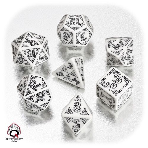 Q-Workshop Celtic Würfel - 7 Stück - weiss und schwarz
