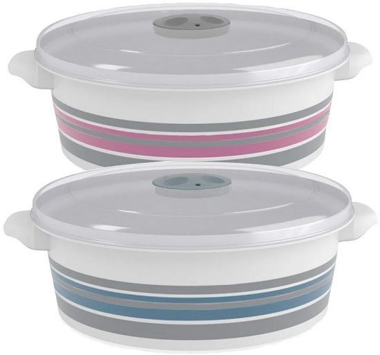 Centi Kunststoff Mikrowellendose weiß mit Streifen pastellfarben 22 x 8,5 cm ca