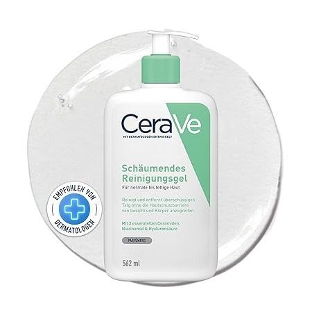 Schäumendes Reinigungsgel mit Hyaluron und 3 essenziellen Ceramiden für Feuchtigkeit und Hautschutz. Ideal für normale bis fettige Haut, entfernt überschüssigen Talg und Make-up, stärkt die Hautbarriere. Geeignet für tägliche Anwendung, morgens und abends. Dermatologisch getestet, ohne Parfum. Enthält 562 ml CeraVe Reinigungsgel für Gesicht und Körper.