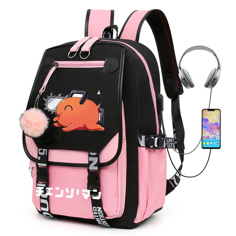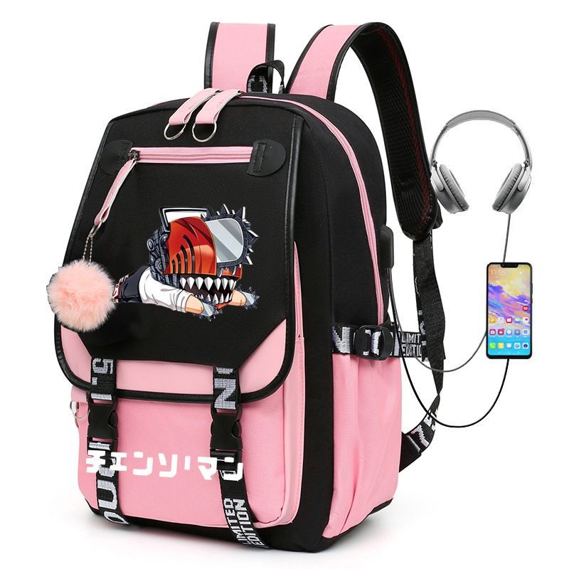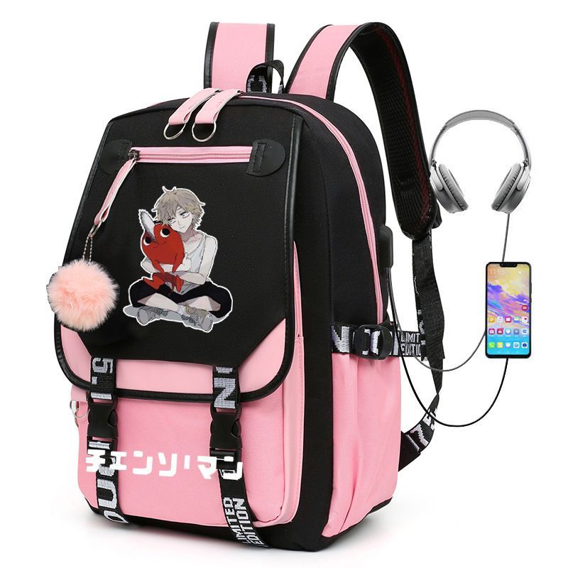 Chainsaw Man Denji USB-Lade Schultaschen College Stil Rucksack Outdoor Backpack