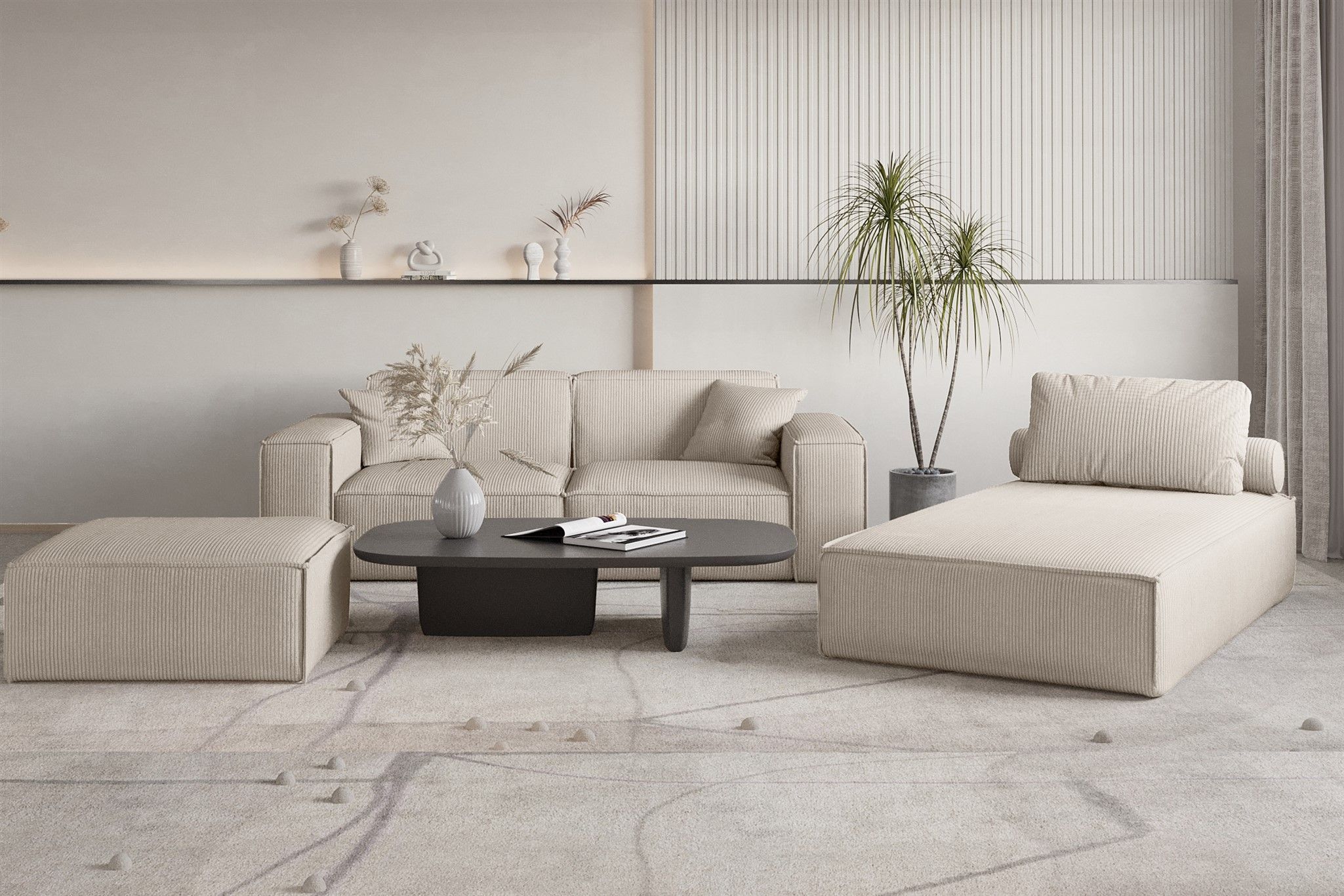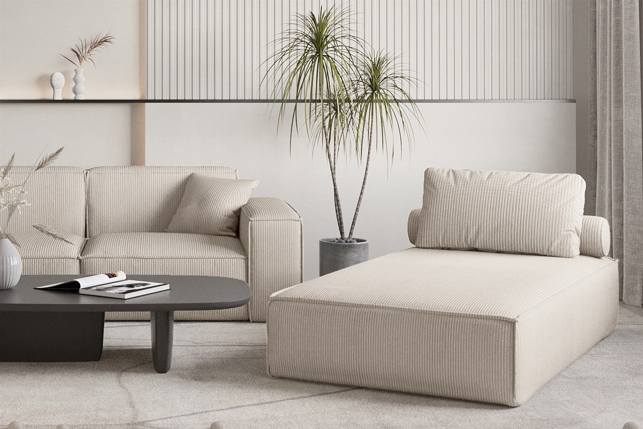 Chaiselongue Sezlong Liege CELES Premium in Stoff Scala Hellbeige