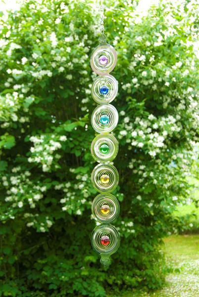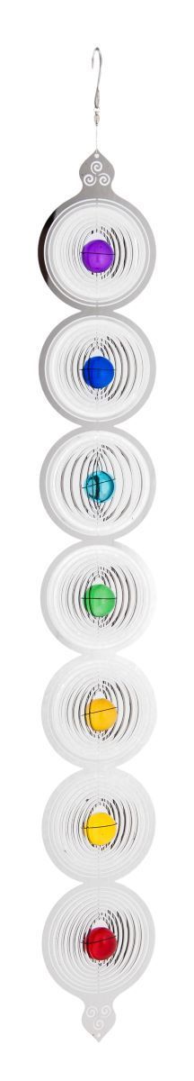 CHAKRA MOBILE L: 76 cm mit 7 Chakra Glaskugeln Edelstahl Windspiel Feng-Shui