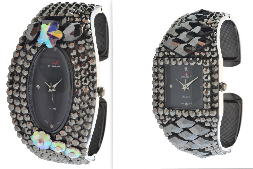 Champ Damen-Spangen Quazuhren mit Strass-Steinen besetzt