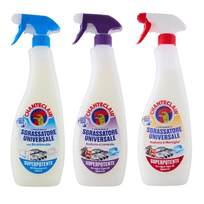 Chante Clair Triopack Sgrassatore Universal Reiniger Fettlöser 3×700 ml (Bicarbonato, Marsiglia, Lavanda) Dieser Reiniger ist für alle Arten von Schmutz und Verunreinigungen. Das spezielle Spray, das auch kopfüber funktioniert. Angenehmer Marsiglia, Bicarbonat und Lavendel-Duft. Bitte beachten: Chan