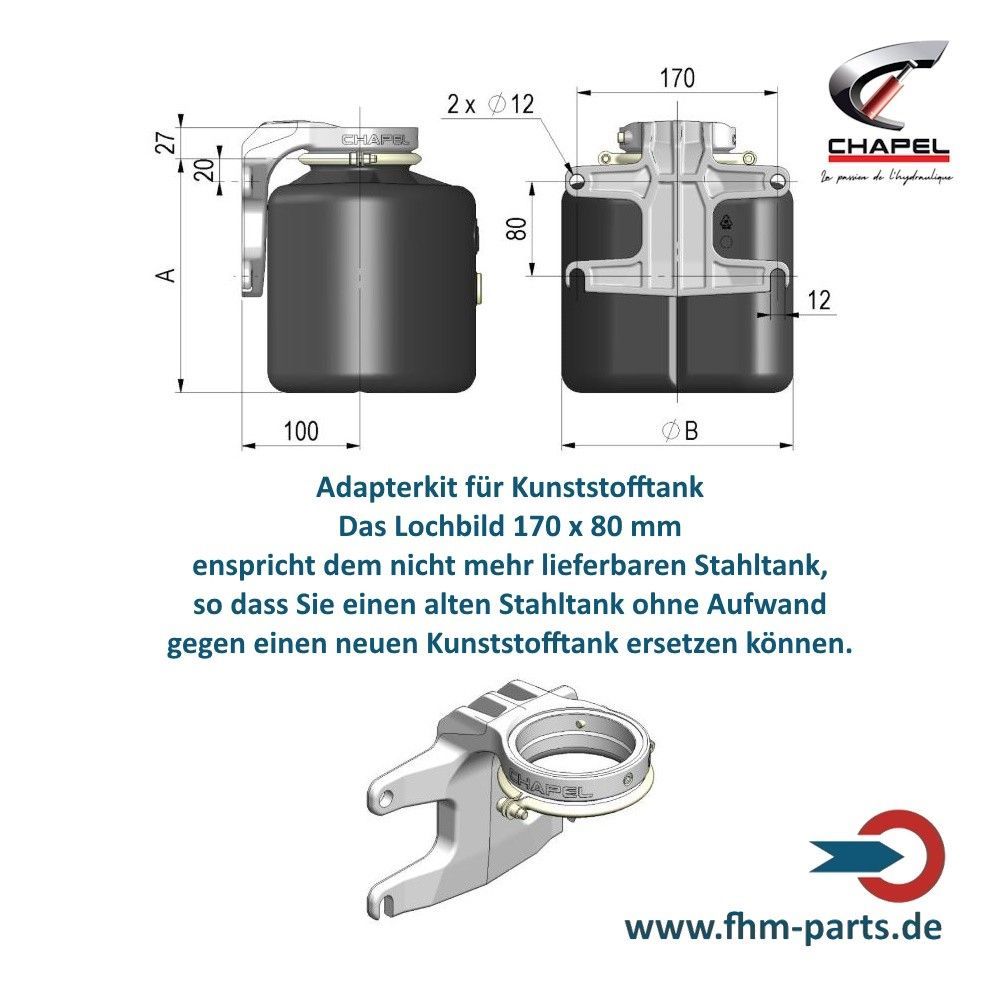Chapel Adapterkit für Handpumpe mit Kunststofftank als Ersatz für den nicht mehr lieferbaren Stahltank. Das Lochbild 170 x 80 mm entspricht dem nicht mehr lieferbaren Stahltank, so dass Sie einen alten Stahltank mit Hilfe dieses Adapters ohne Aufwand gegen einen neuen Kunststofftank ersetzen können.