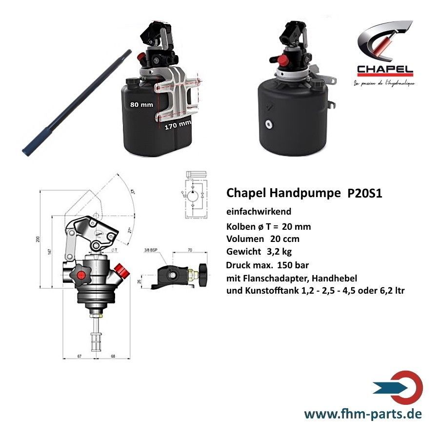 Chapel Hydraulik-Handpumpe einfach-oder doppeltwirkend m. Tank u. Hebel div. Gr