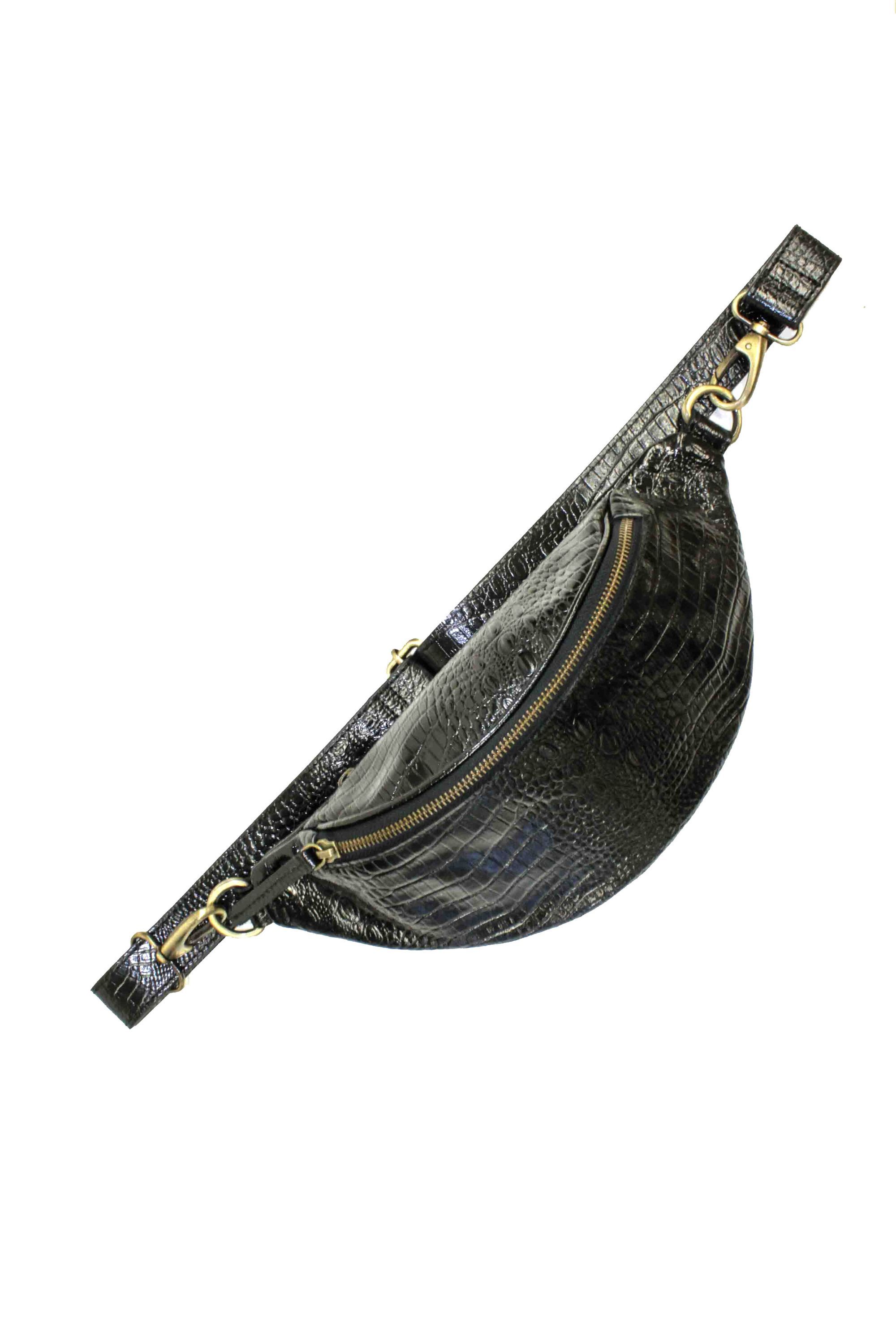Charlie M" Schwarze Beltbag aus Leder in Crocooptik