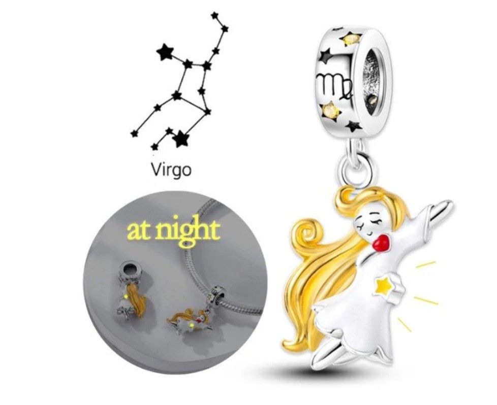 Charms Anhänger Charm kompatibel für alle bekannten Gliederarmbänder 925 Sterling Silber   Jungfrau im dunkeln leuchten Dieses funkelnde Charm ist auch für das original Pandora Armband. Passend für: alle gängigen Marken-Armbänder, mit 4–5 mm Loch zur Befestigung an Schlangenketten, Seilen, geflo