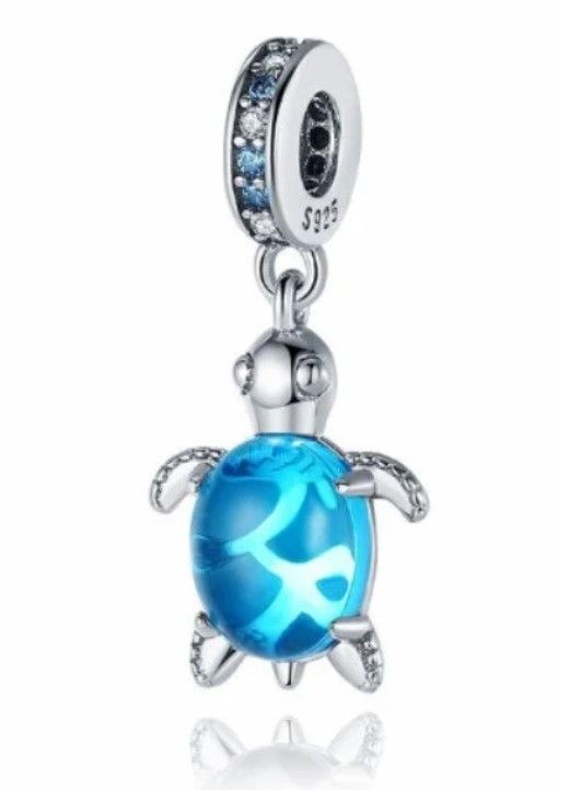 Charm Anhänger für alle bekannten Gliederarmbänder Schildkröte blau