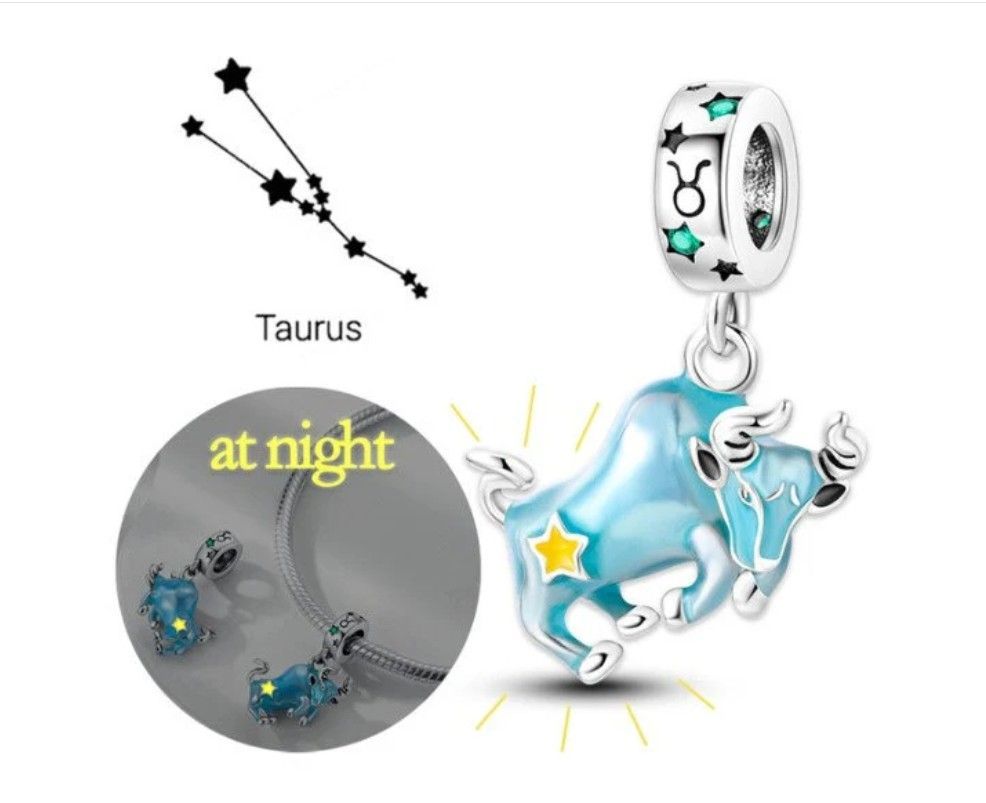 Charms Anhänger Charm kompatibel für alle bekannten Gliederarmbänder 925 Sterling Silber   Stier im dunkeln leuchten Dieses funkelnde Charm ist auch für das original Pandora Armband. Passend für: alle Jungfrau im dunkeln leuchten Dieses funkelnde Charm ist auch für das original Pandora Armband.