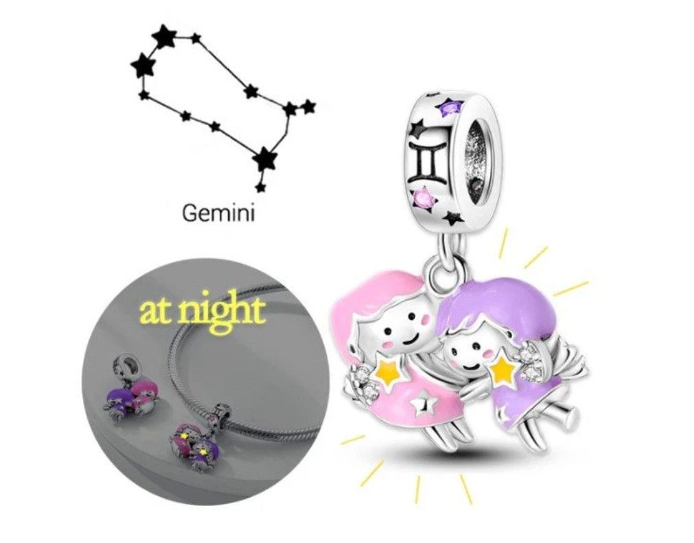 Charms Anhänger Charm kompatibel für alle bekannten Gliederarmbänder 925 Sterling Silber   Zwilling im dunkeln leuchten Dieses funkelnde Charm ist auch für das original Pandora Armband. Passend für: alle Jungfrau im dunkeln leuchten Dieses funkelnde Charm ist auch für das original Pandora Armban
