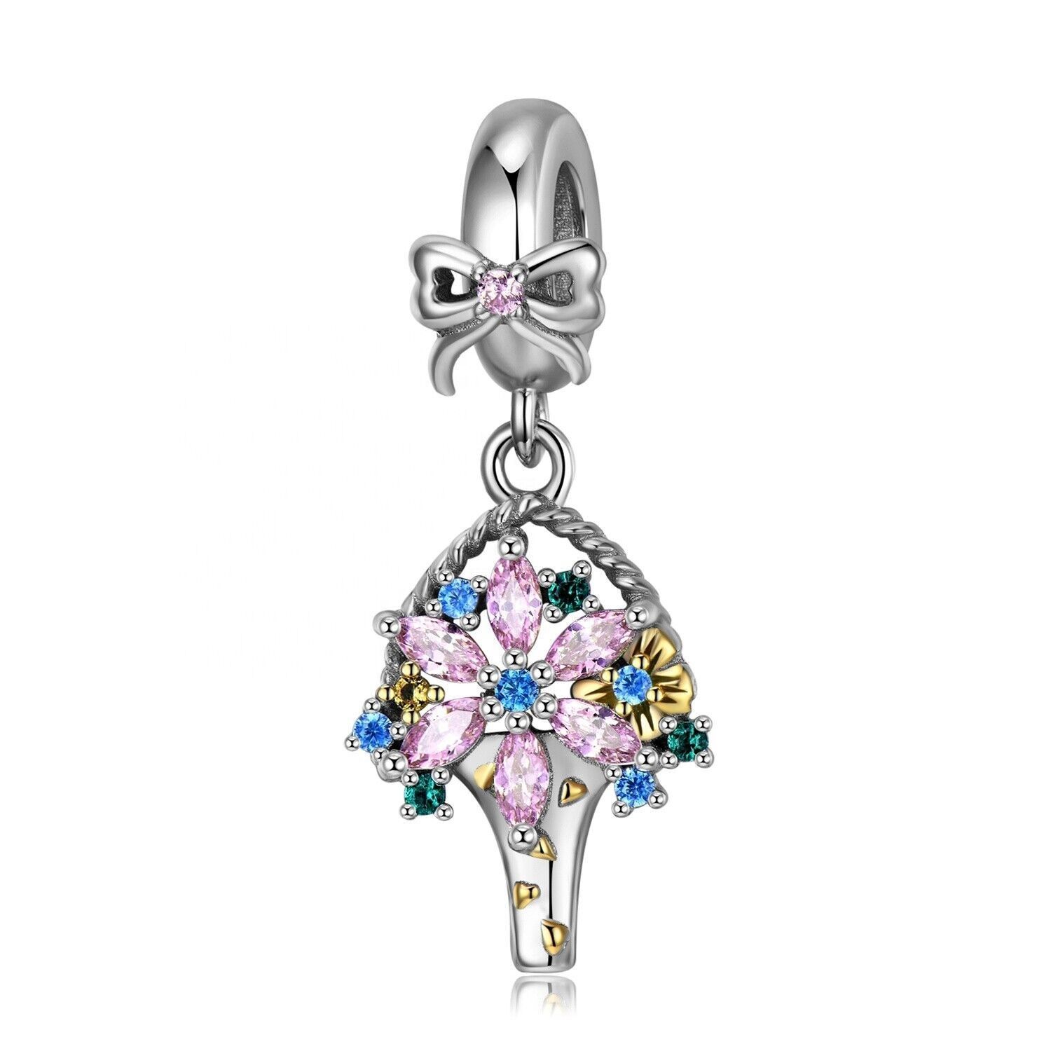 Charm Anhänger für Pandora Armbänder Silber 925 Blumenstrauß Damen Weihnachtsgeschenk