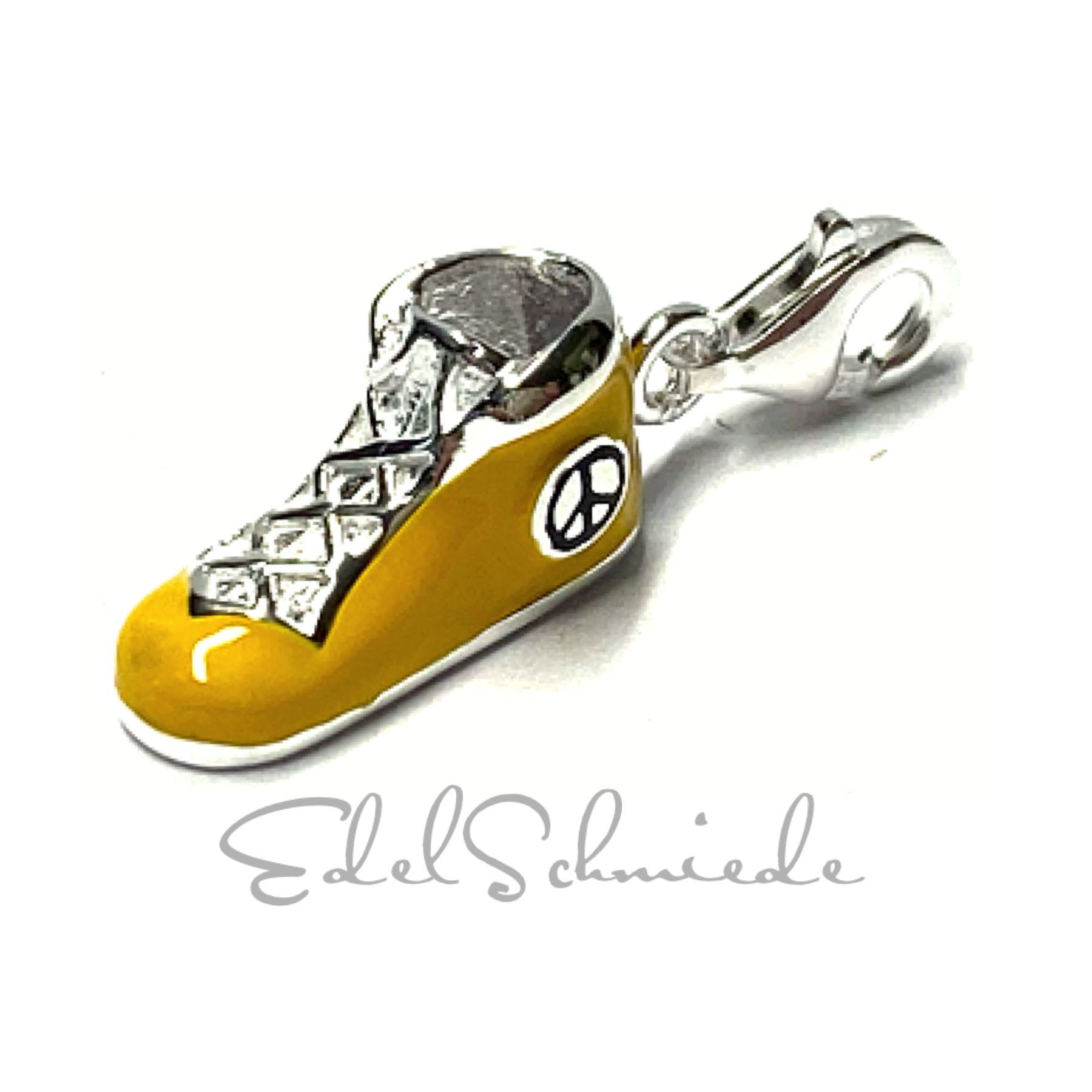 Charm Anhänger Sneaker gelb Silber 925 Peace Bettelarmband Anhänger