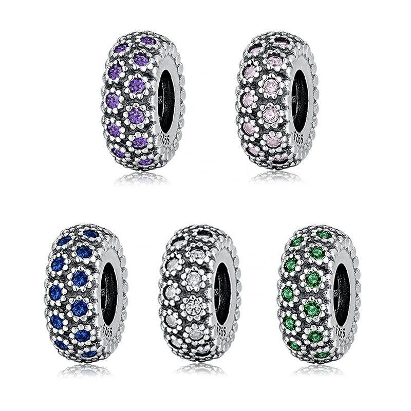 Charm Stopper kompatibel Pandora 925 Sterling Silber Blume Weiß Blau Rosa Grün Zirkon