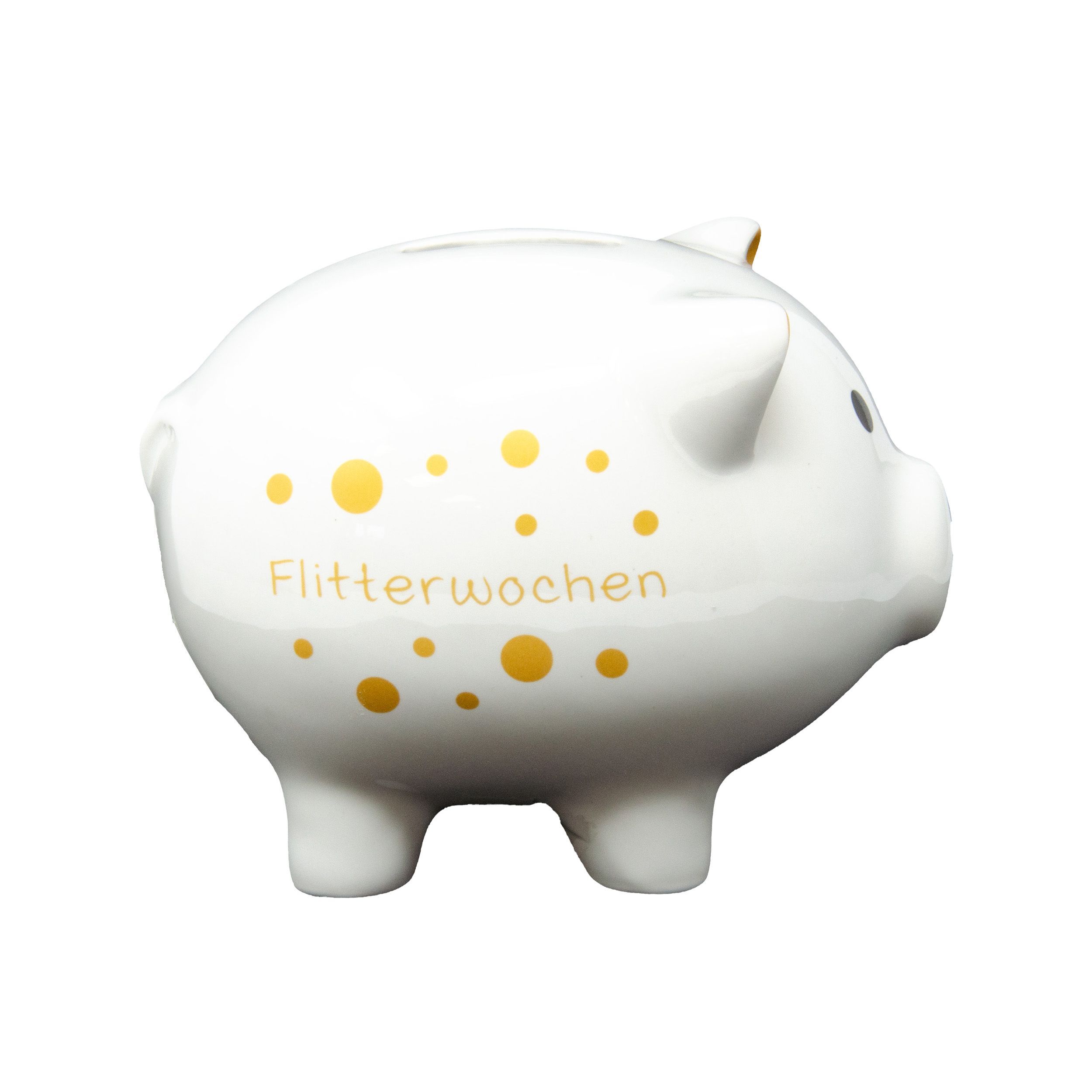 Charmantes Sparschwein aus Dolomit mit Flitterwochen Aufdruck