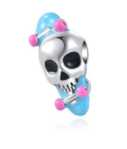 Charms Anhänger Charm kompatibel für Pandora 925 Sterling Silber Skateboard Totenkopf Dieses funkelnde Charm ist auch für das original Pandora Armband. Passend für: alle gängigen Marken-Armbänder, mit 4–5 mm Loch zur Befestigung an Schlangenketten, Seilen, geflochtenen Drähten oder anderen Seilmater