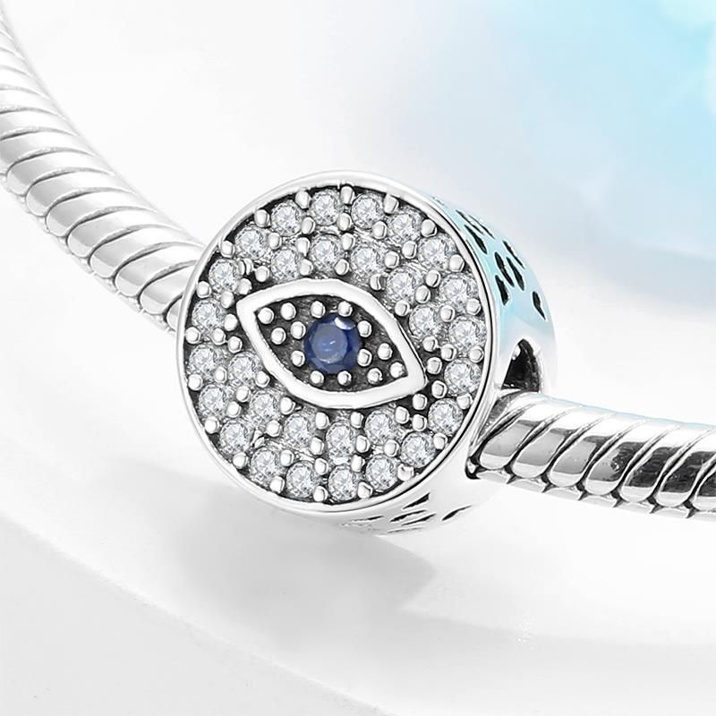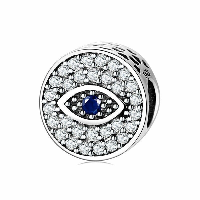 Charms Anhänger für Pandora Armbänder 925 Sterling Silber Blaues Auge Weißer Zirkon