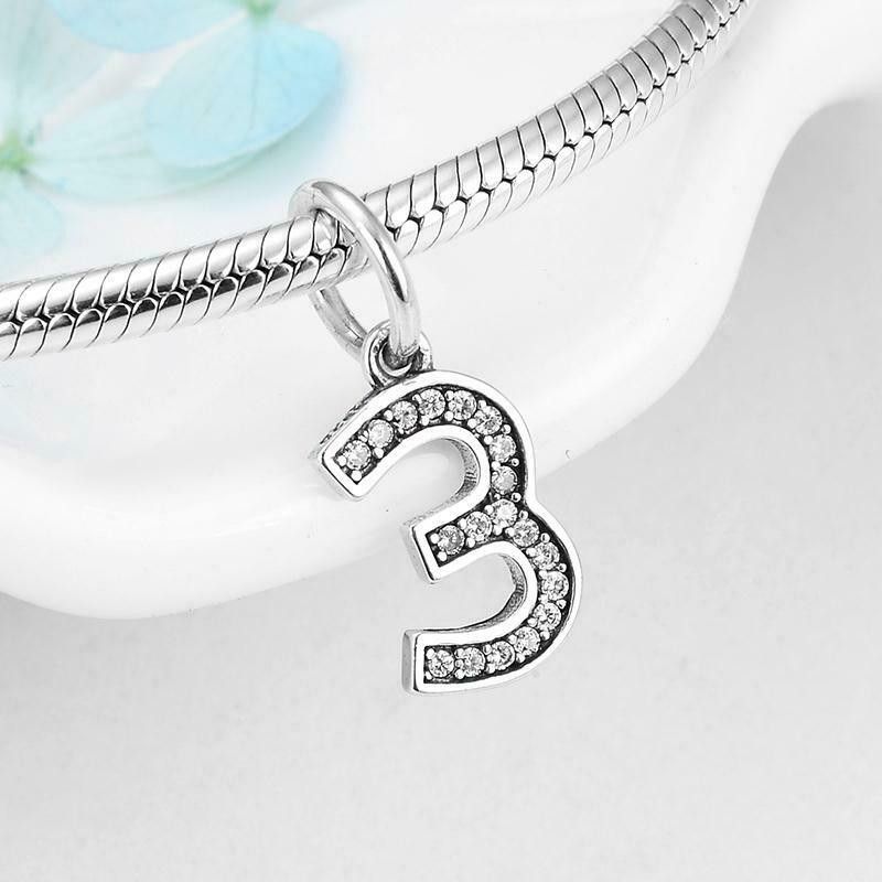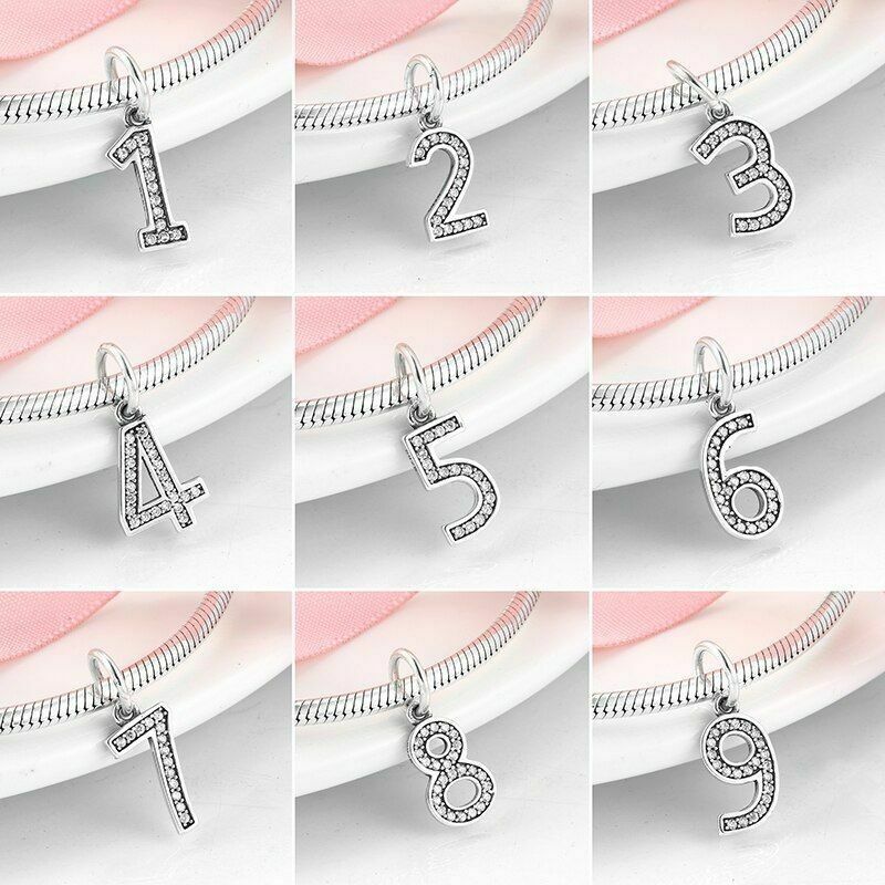 Charms Anhänger für Pandora Armbänder 925 Sterling Silber Nummer Zahlen von 0 bis 9