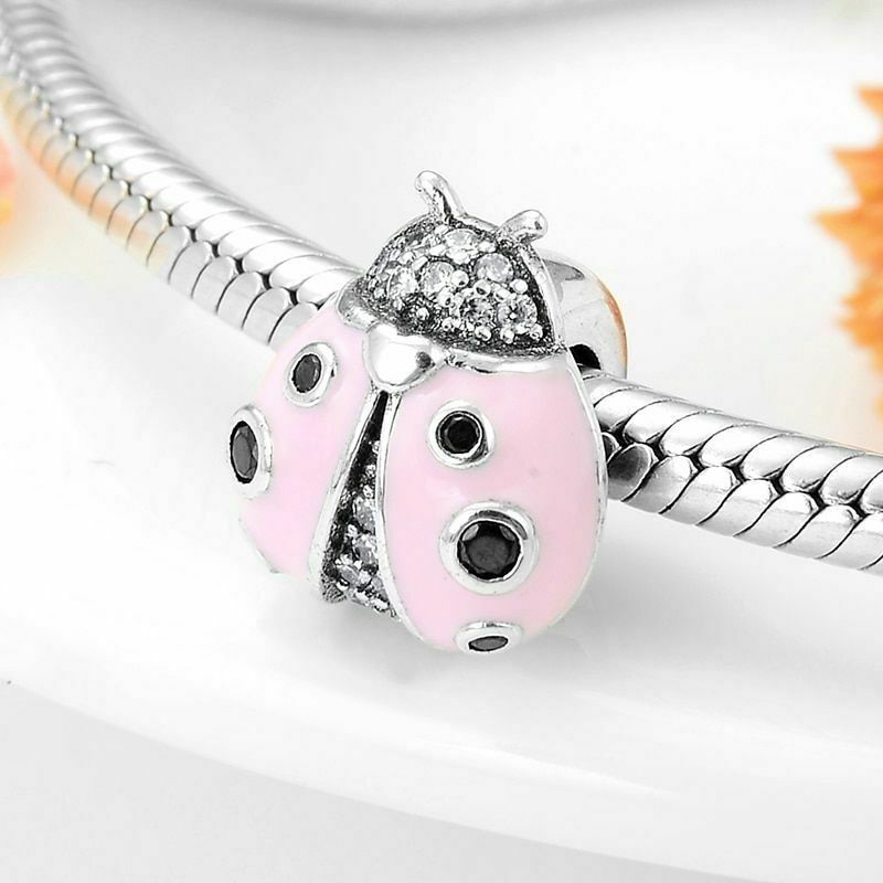 Charms Anhänger für Pandora Armbänder 925 Sterling Silber Rosa Marienkäfer Geschenke