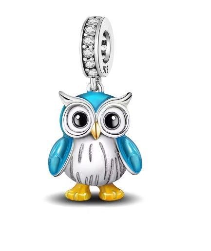 Charms Anhänger kompatibel für Pandora 925 Sterling Silber Eule blau