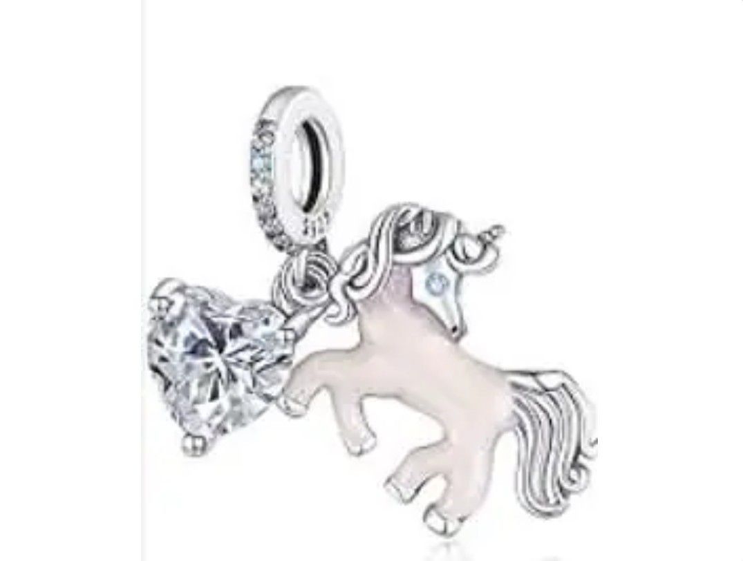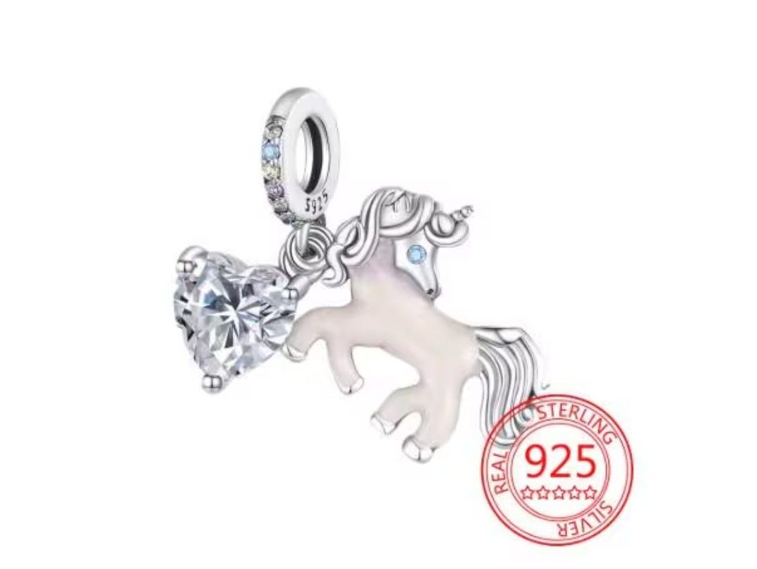Charms Anhänger kompatibel für Pandora 925 Sterling Silber Pferdchen mit Herzstein