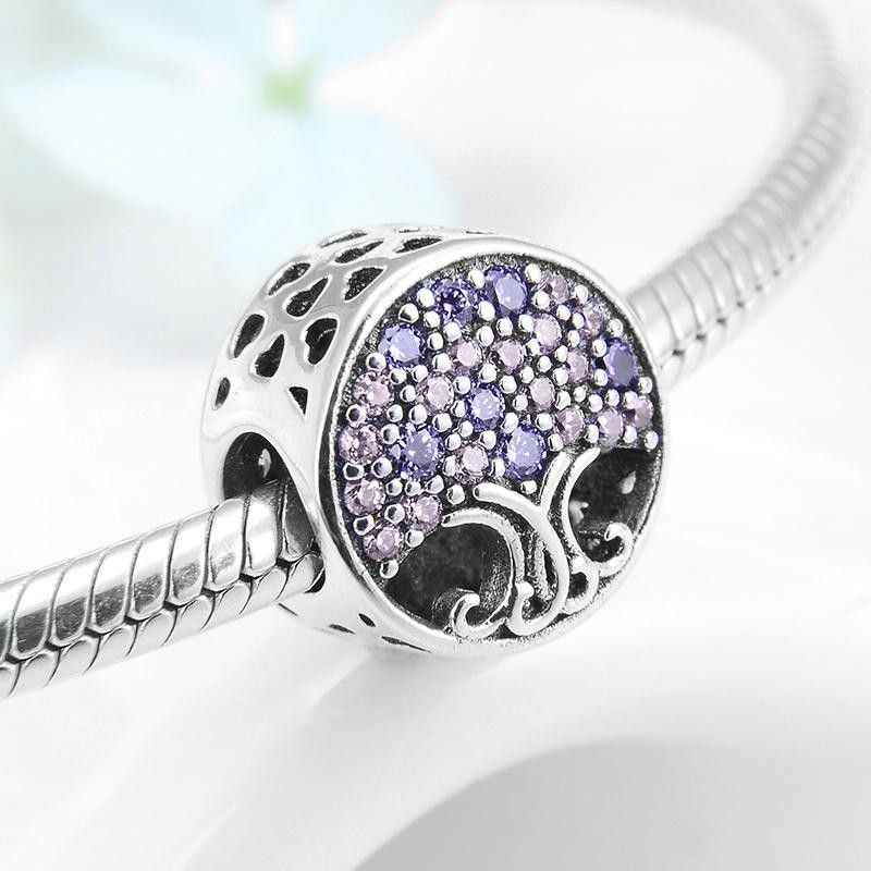Charms Anhänger kompatibel Pandora 925 Sterling Silber Baum des Lebens Zirkon Stein