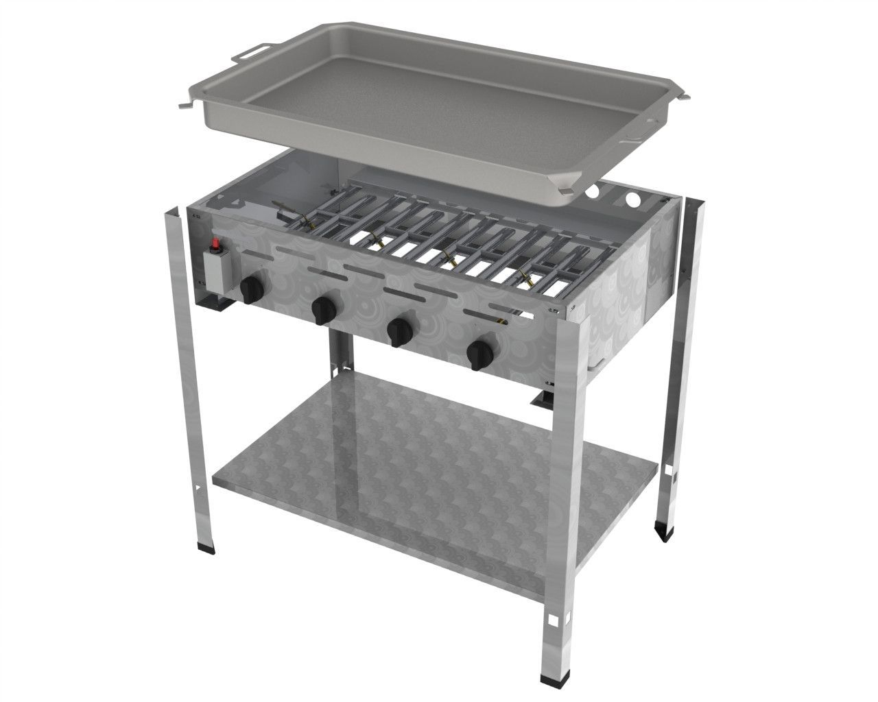 ChattenGlut Gastrobräter 4-flammig 18kW Standgerät mit Edelstahlpfanne