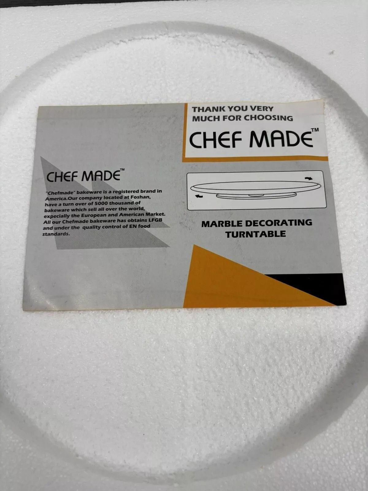 CHEFMADE Tortenplatte drehbar 30 cm - Tortenständer Weiß - Kuchenplatte mit Fuß 30,1 x 4,3 cm - Serviceplatte rund in hochwertiger Marmoroptik Material : Marmor Gewicht : 3 Kg