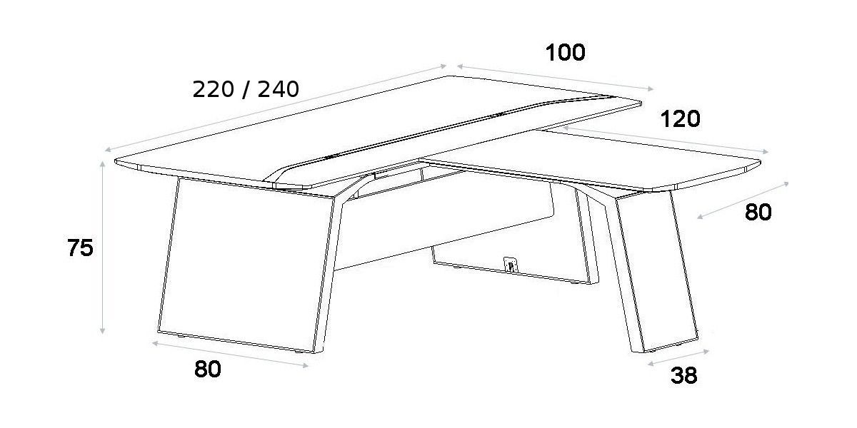 Chefschreibtisch METAR mit Besprechungstisch vorne 220/240 x 100 x 75cm