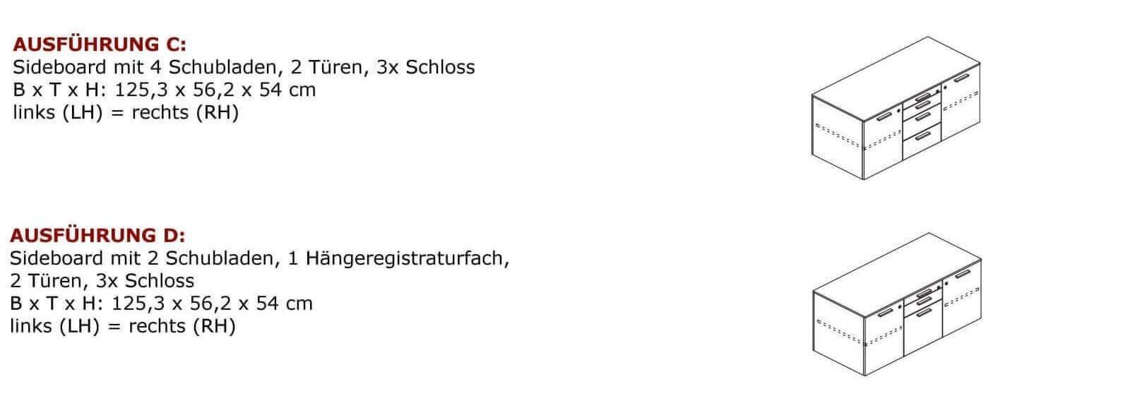 Tisch-Sideboard-Kombination, Sideboard 125,3 x 56,2 x 54 cm - Wir sind Ihr Partner für hochwertige Büroeinrichtung Schreibtisch mit Sideboard WINGLET von Bralco Eine moderne und repräsentative Büroausstattung ist das A und O und das Aushängeschild jeder Firma. Der hochwertige Chefschreibtisch mit in