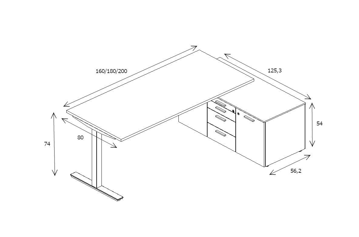 Chefschreibtisch Winglet mit Sideboard 160-200 x 80 x 74 cm