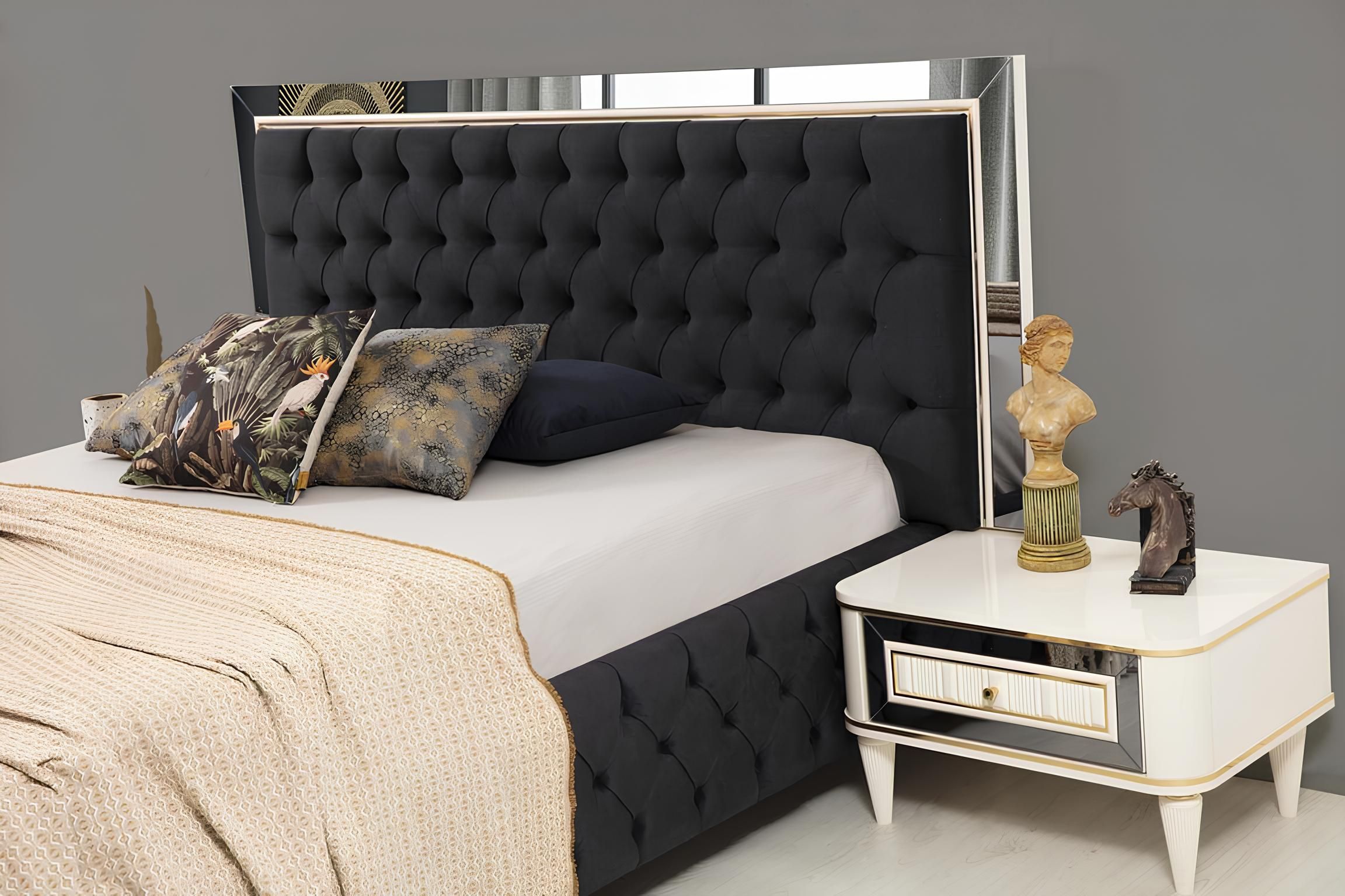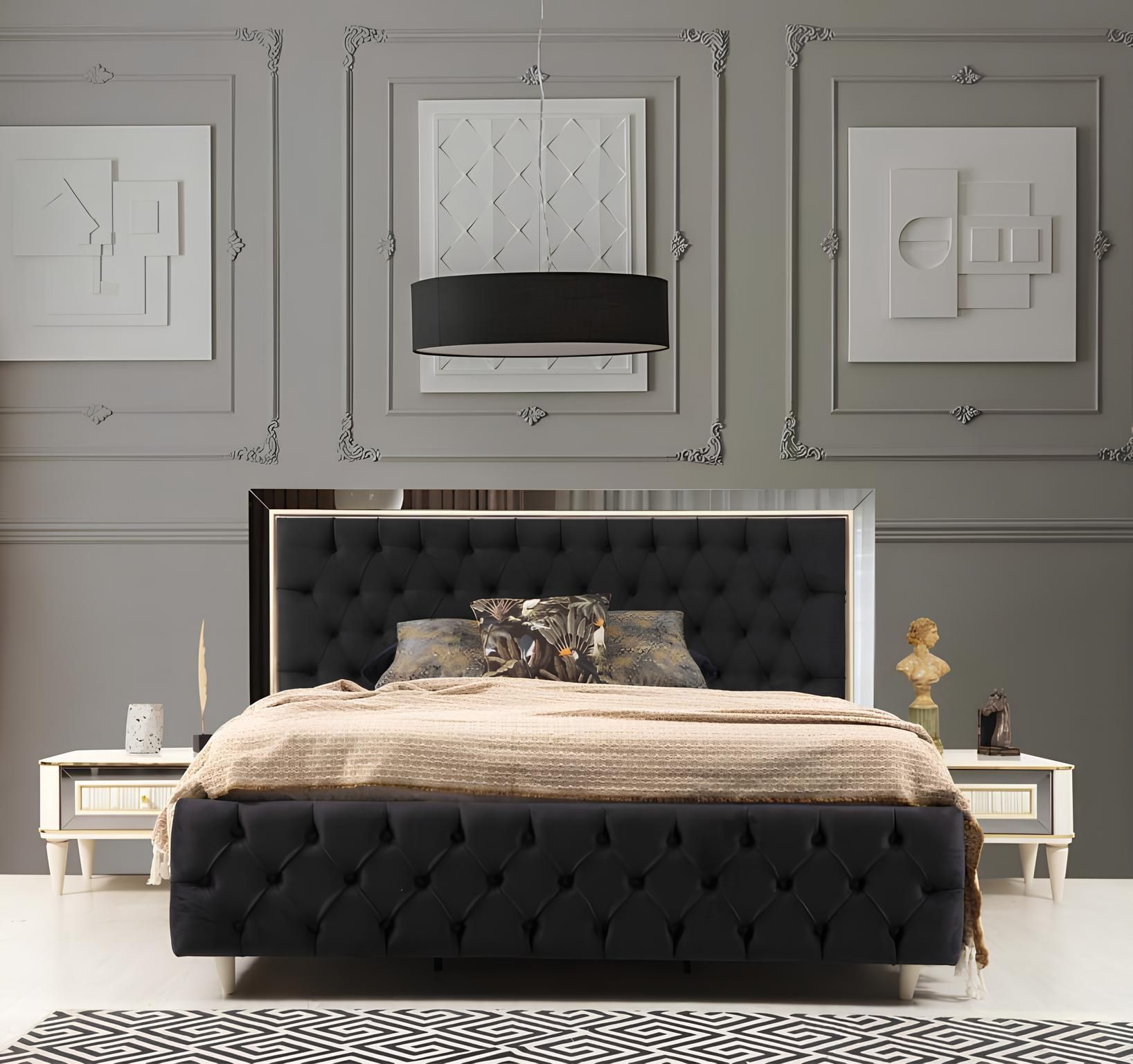 Luxus Chesterfield Bett mit Edelstahl Rahmen Edle Betten Schwarze Textil