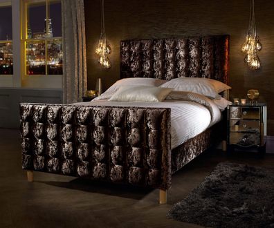 Bett aus Holz Chesterfield Betten Doppelbett im Schlafzimmer Samt Textil