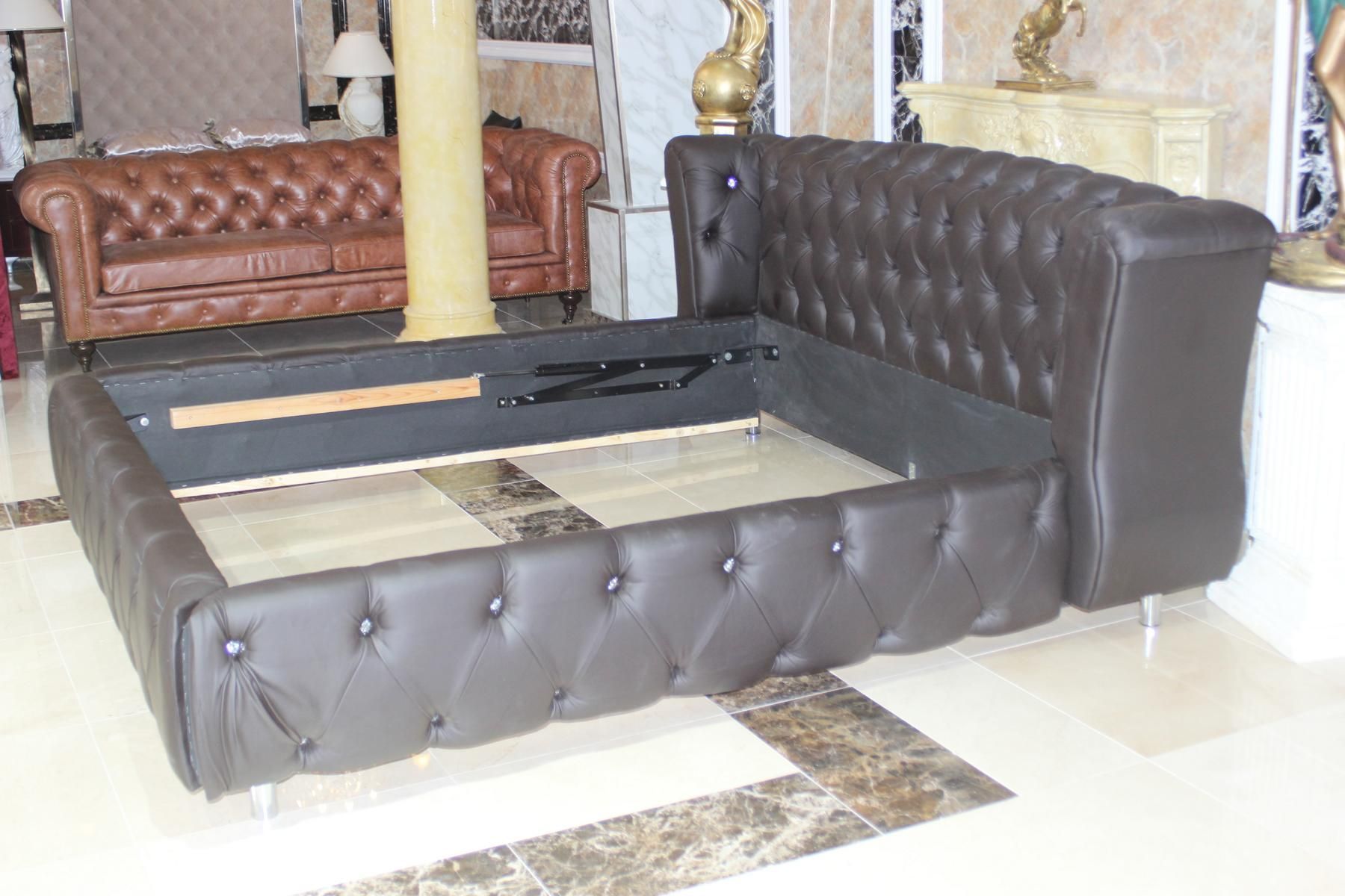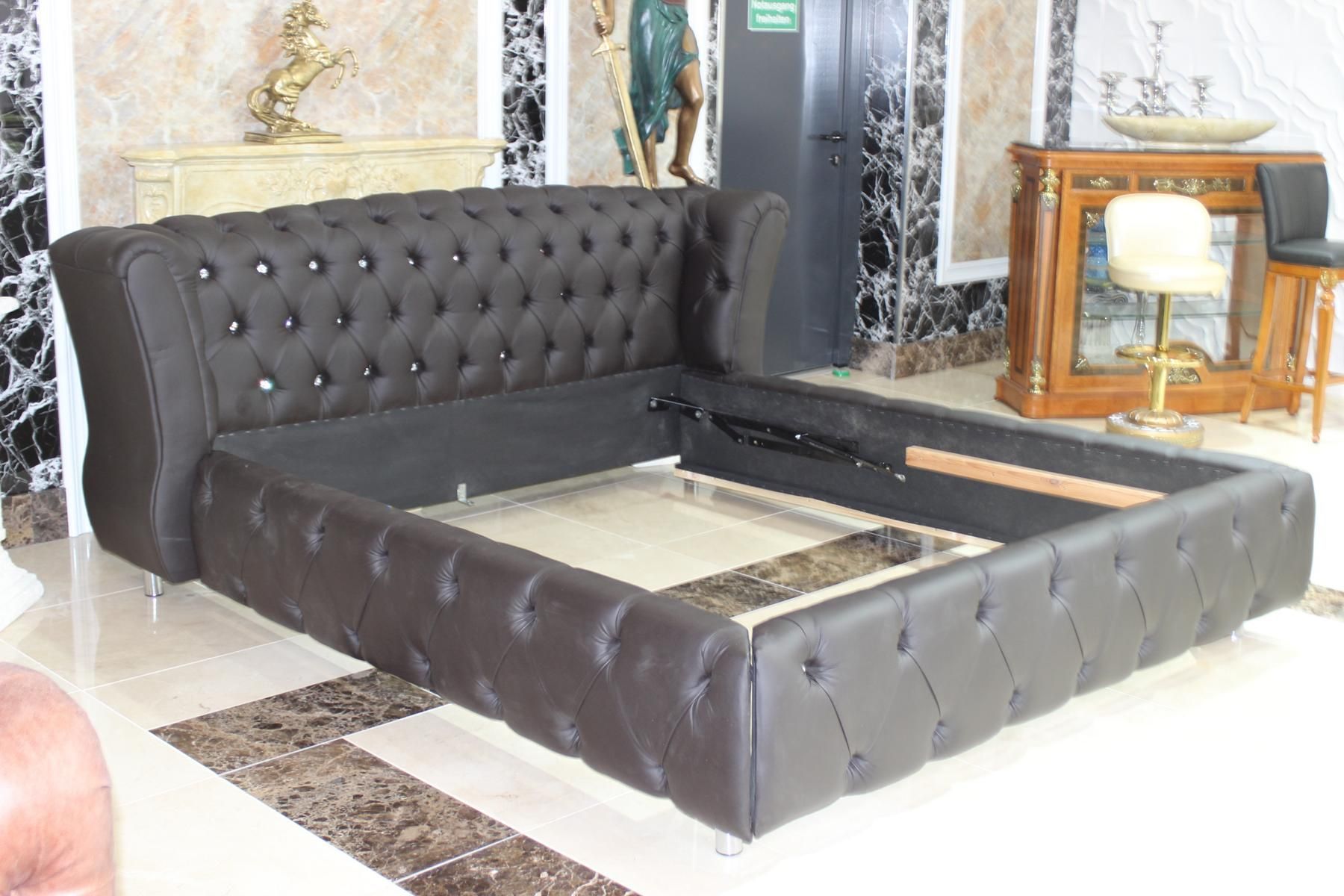 Chesterfield Big Bett Kopfteil Betten Polster Hotel Bett mit Kristallen Sofort