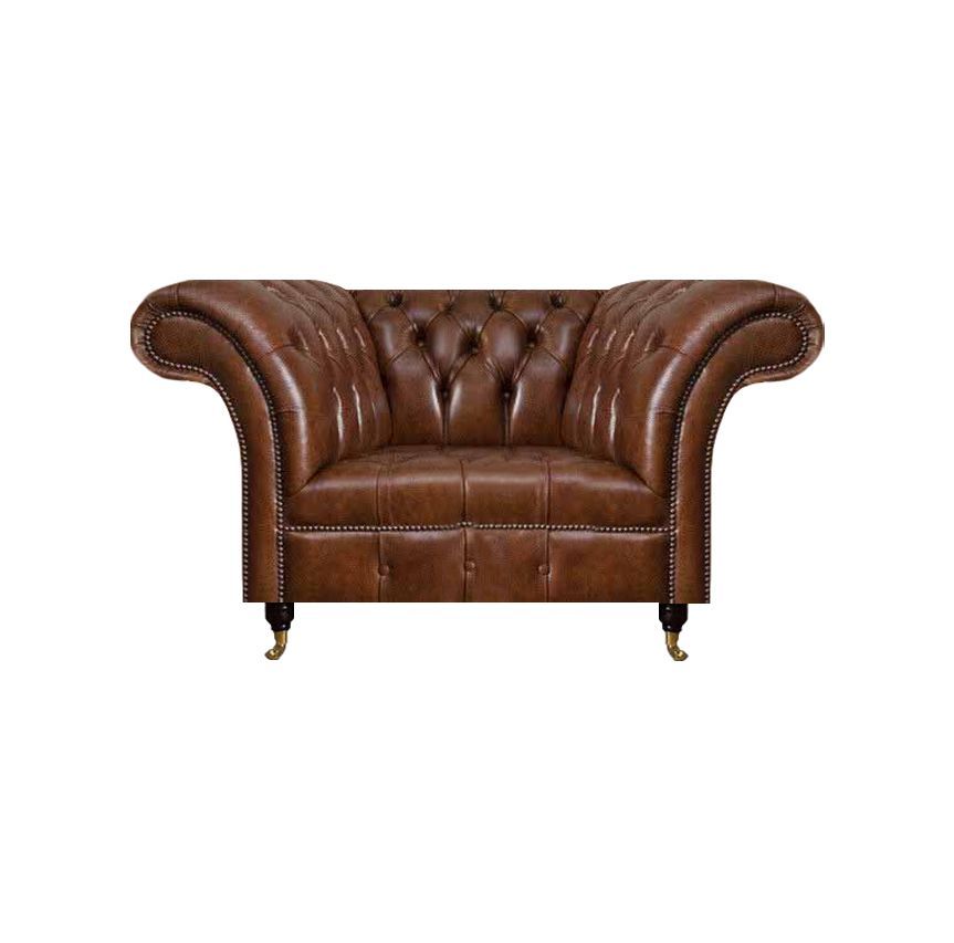 Chesterfield Brauner Ledersessel Wohnzimmer Kunstleder Einsitzer Möbel