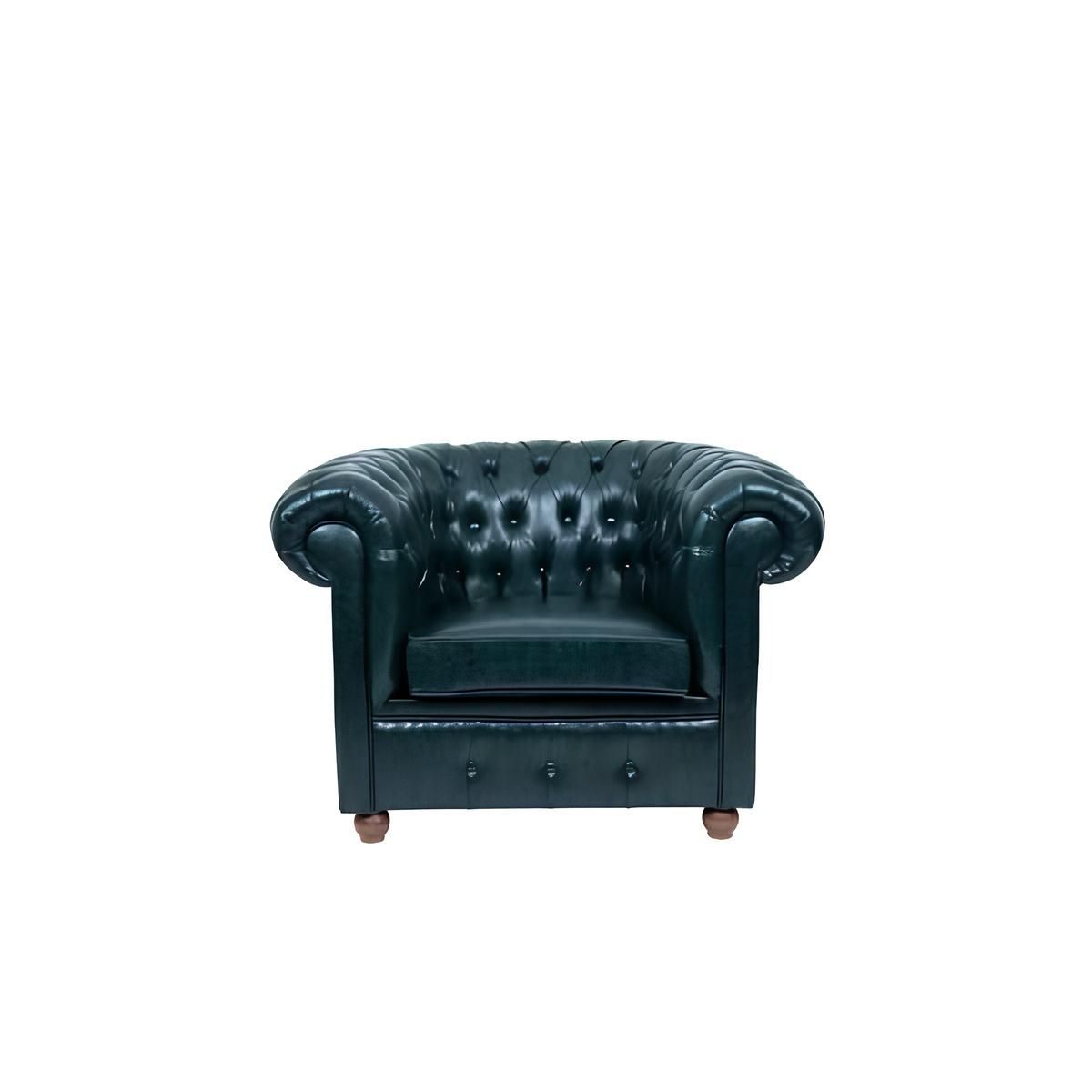 Chesterfield Dunkelgrüner Sessel Lounge Wohnzimmer Fernseh Einsitzer