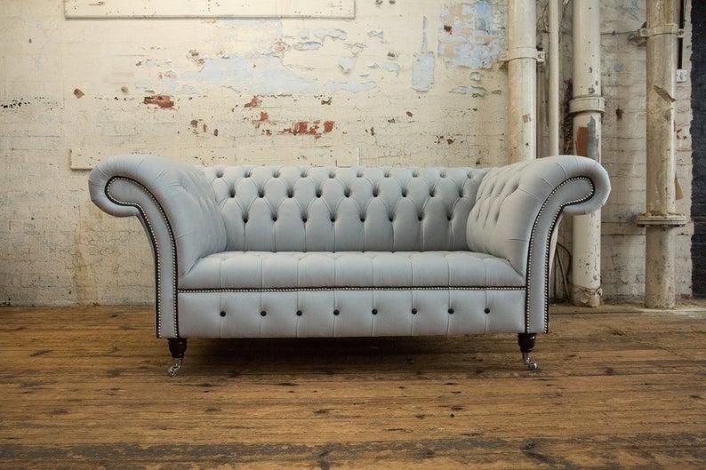 Chesterfield Ledersofa Couch Polster designer 2 Sitzer Sofas Couchen Neu Textil