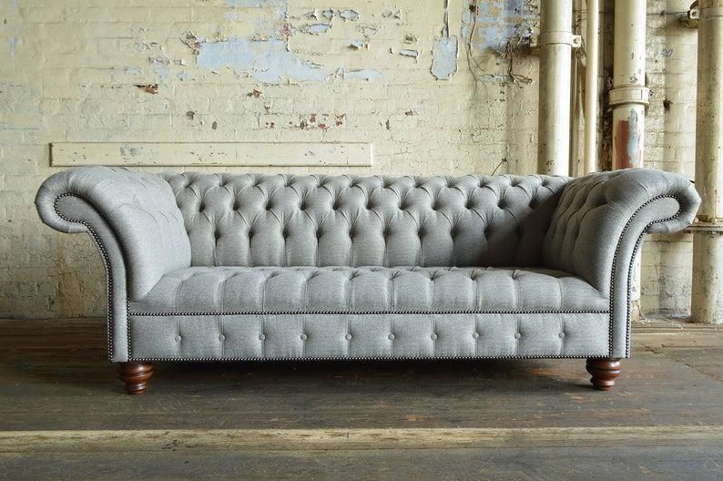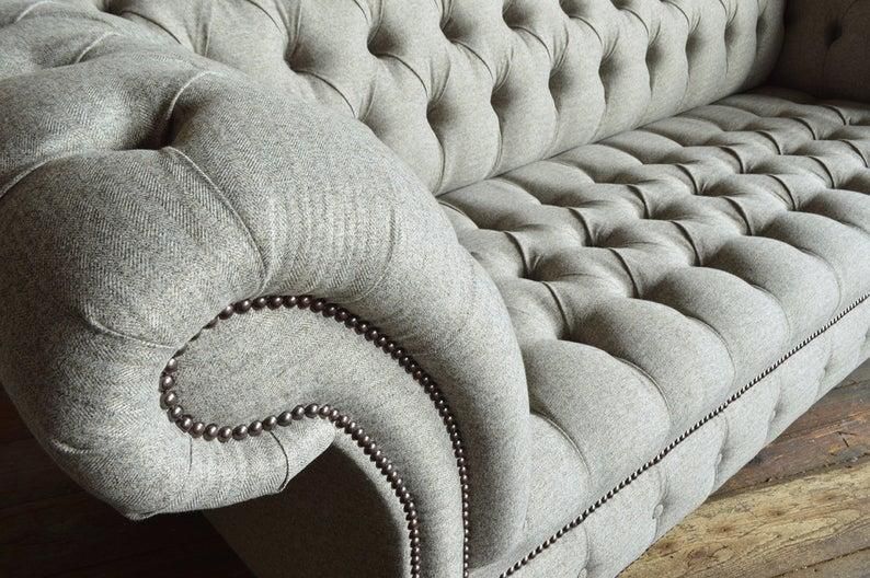 Chesterfield Ledersofa Couch Polster designer 3 Sitzer Textil Sofas Couchen Neu