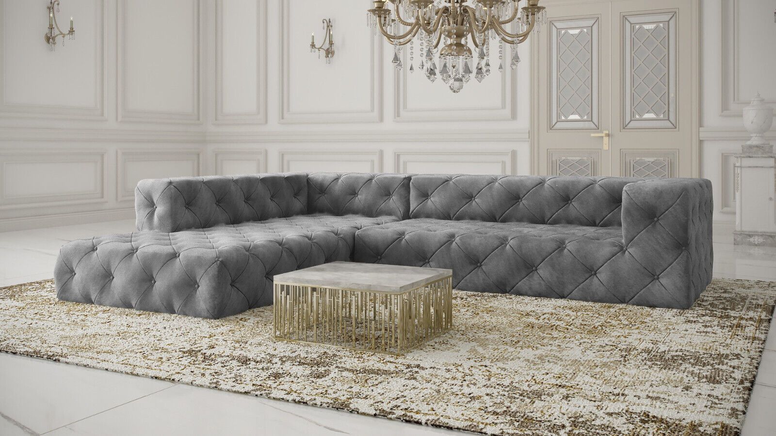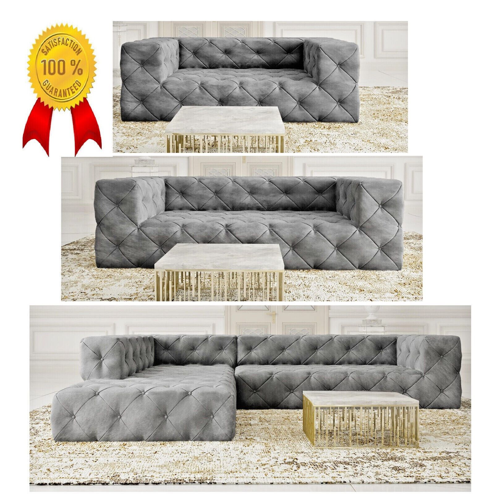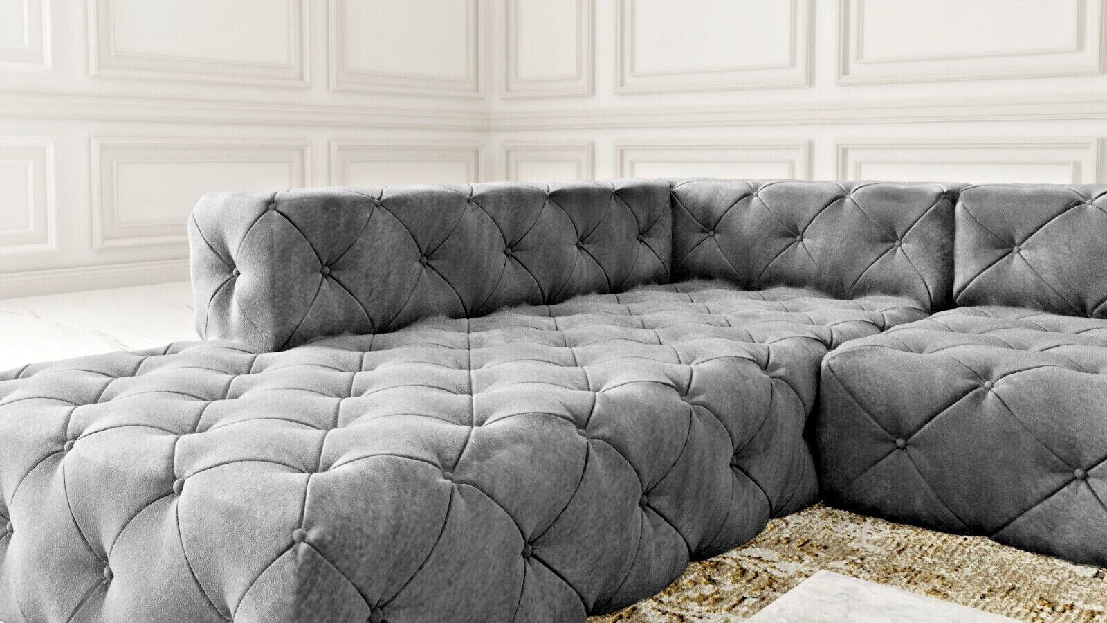 Chesterfield "PLATINUM" SAMT Hellgrau SET 2 + 3 Ecksofa XL Sofagarnitur 3 SITZER