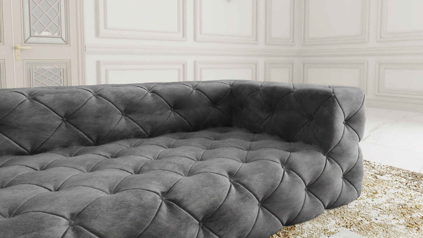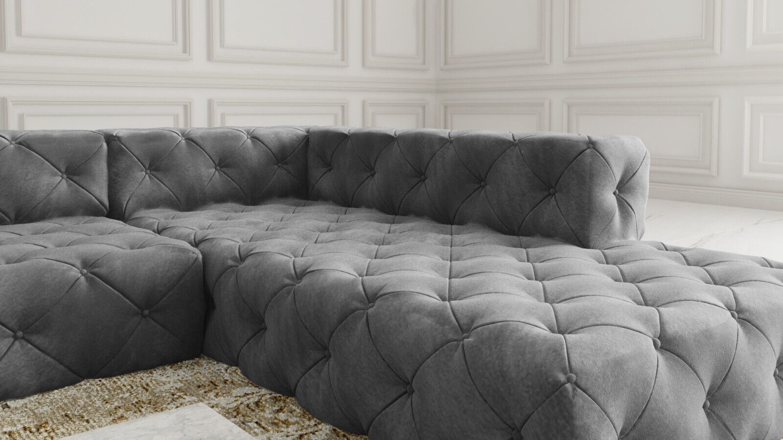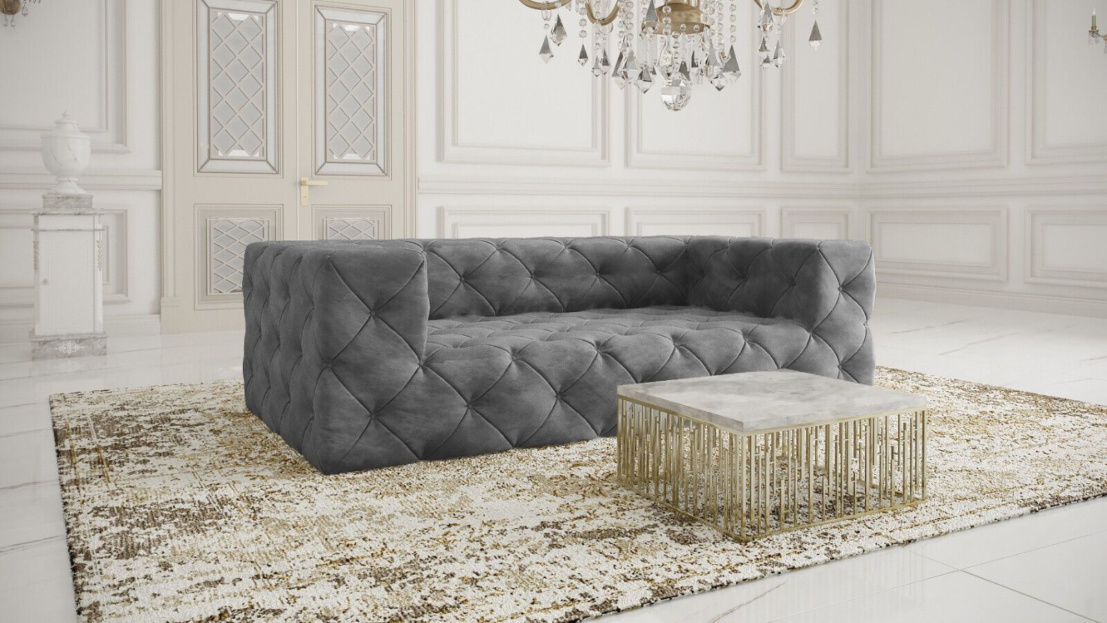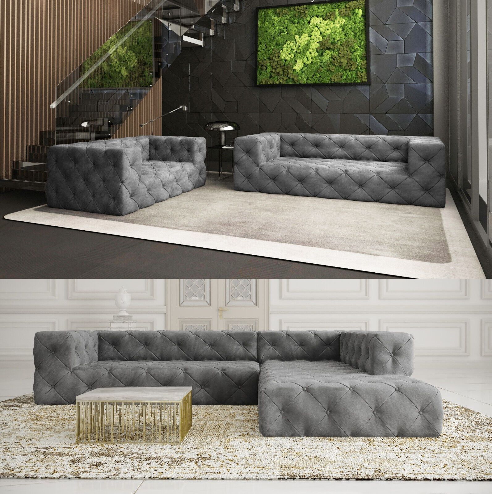 Chesterfield "PLATINUM" SAMT Hellgrau SET 2 + 3 Ecksofa XL Sofagarnitur 3 SITZER