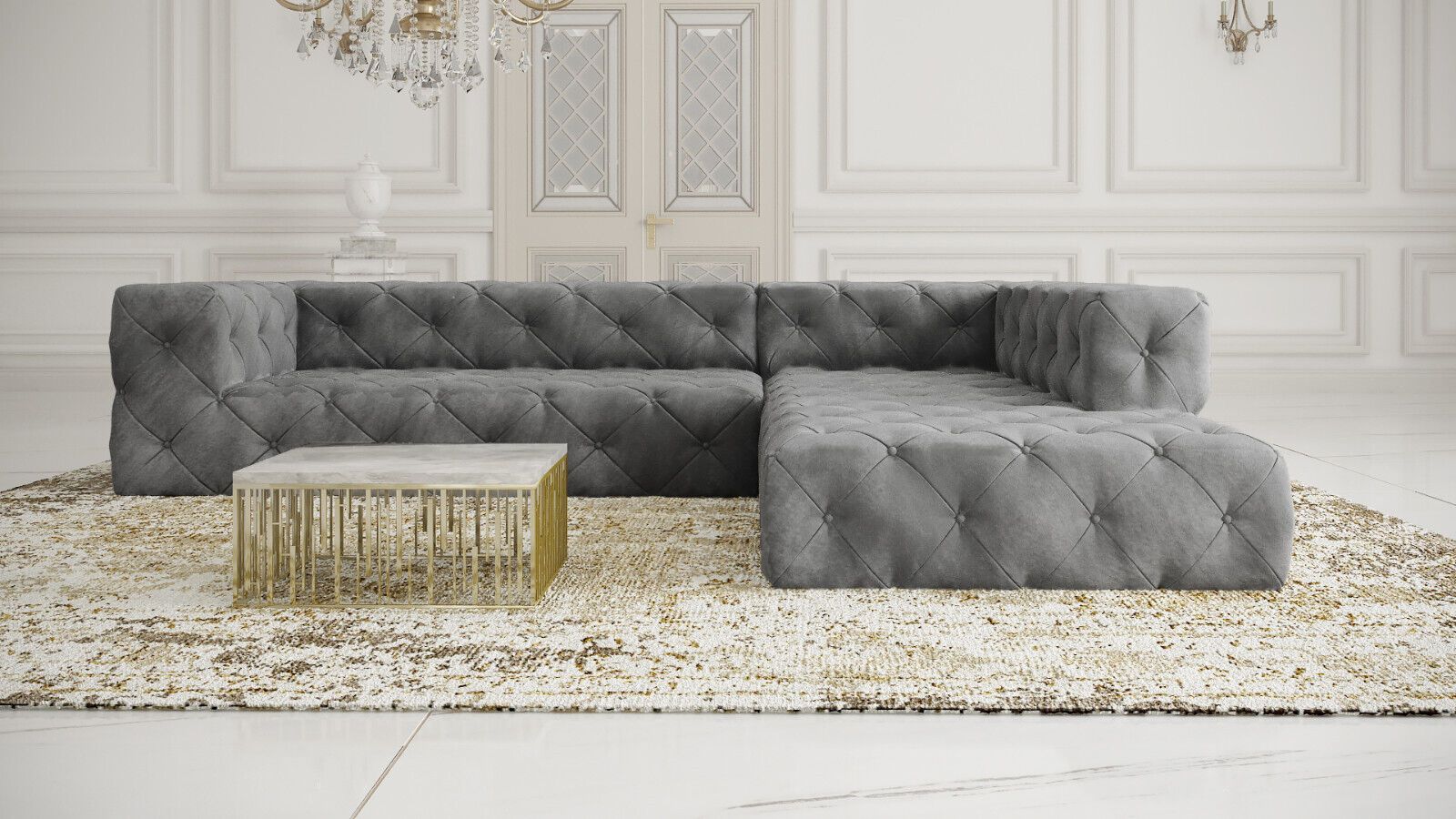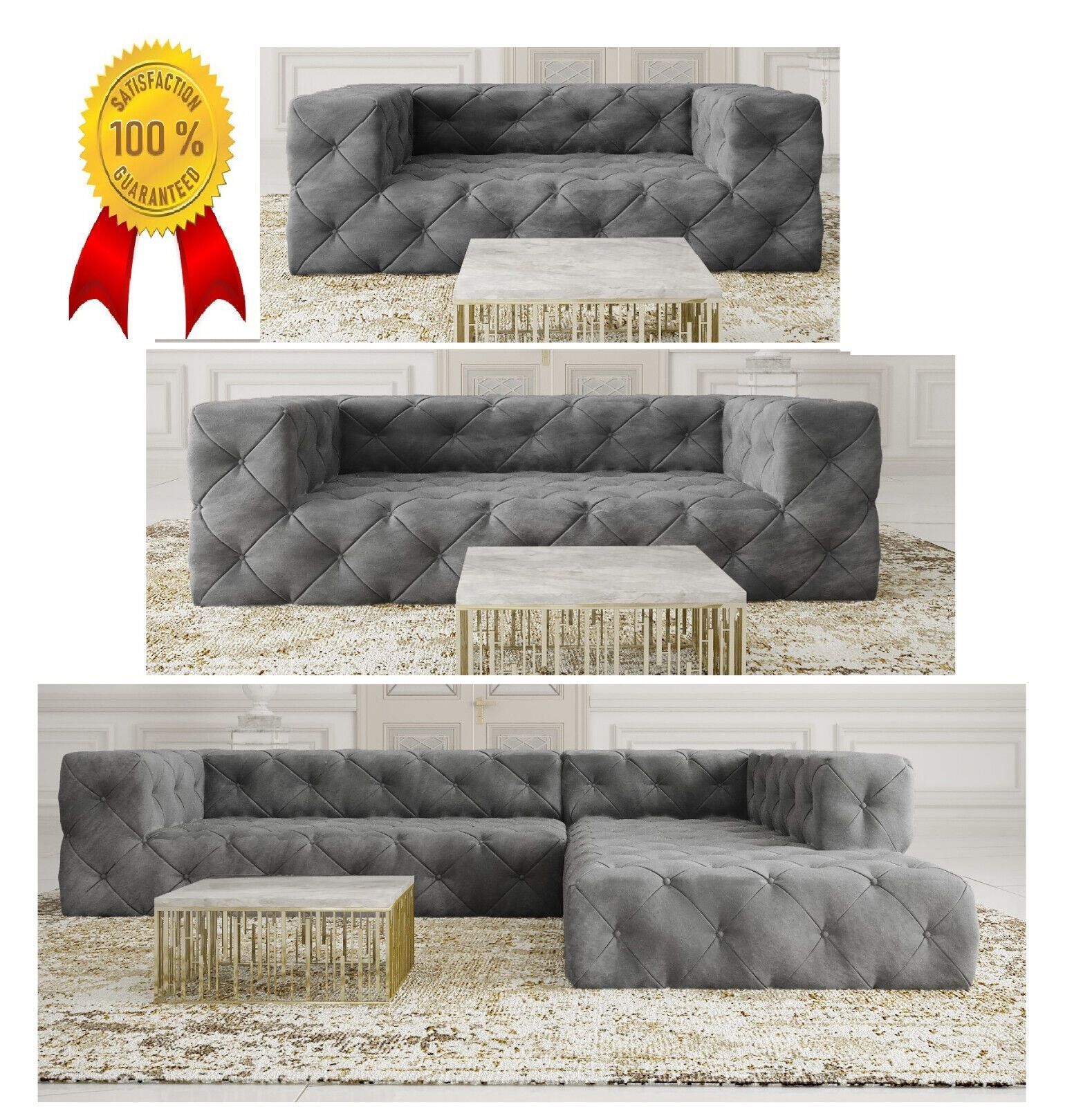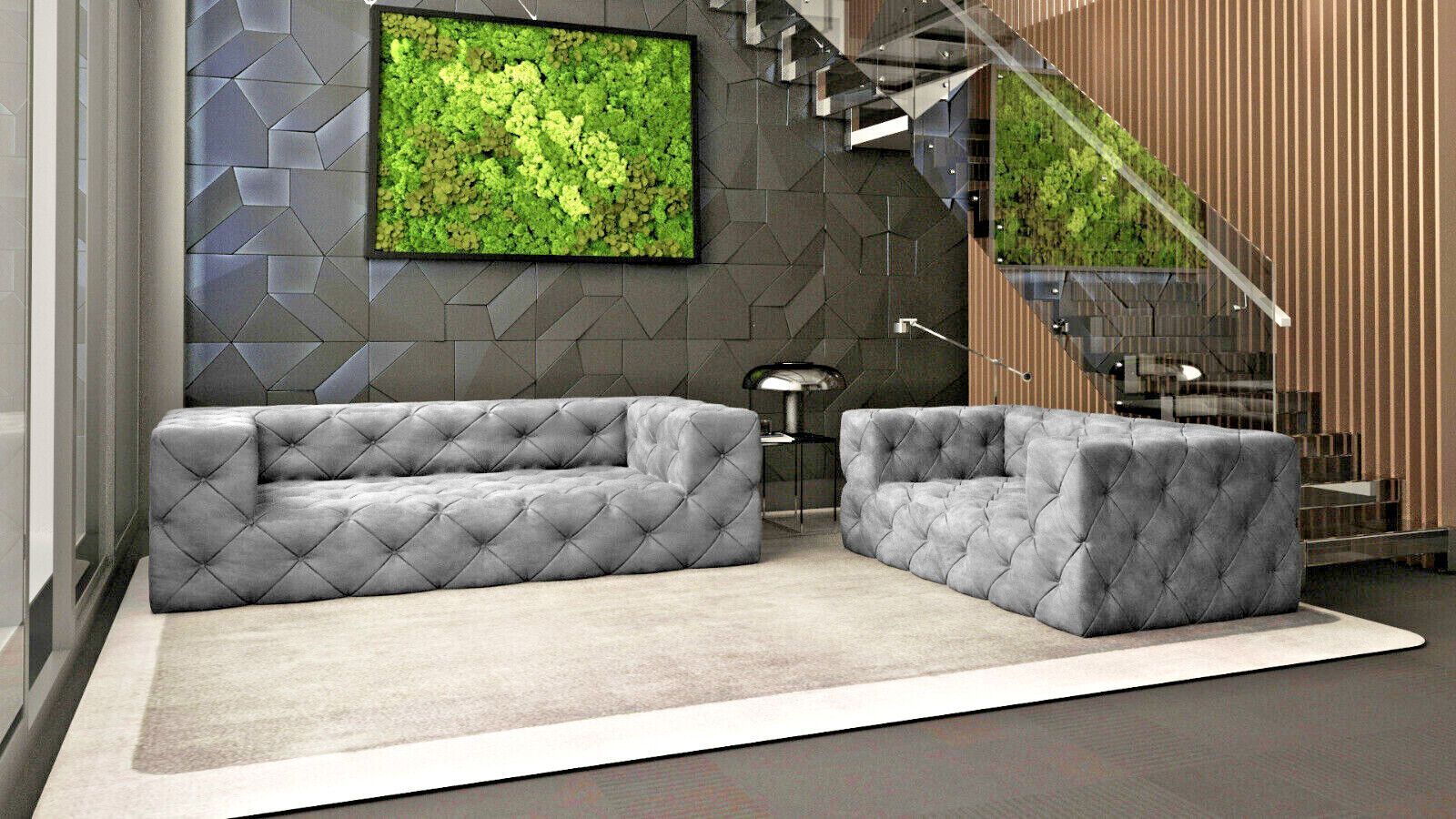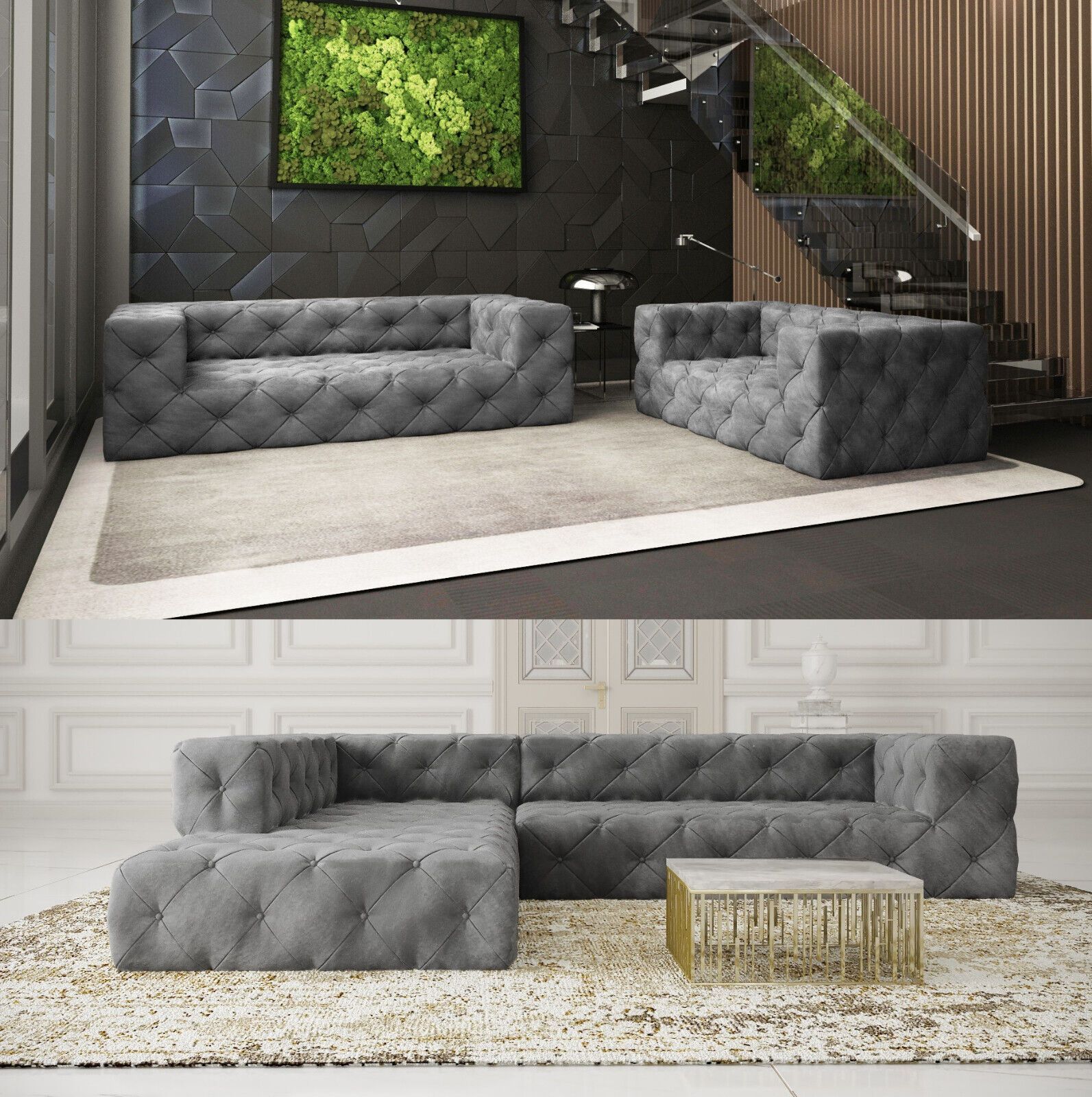 Chesterfield "PLATINUM" SAMT SET 2 + 3 Ecksofa Hellgrau XL 3 SITZER Sofagarnitur