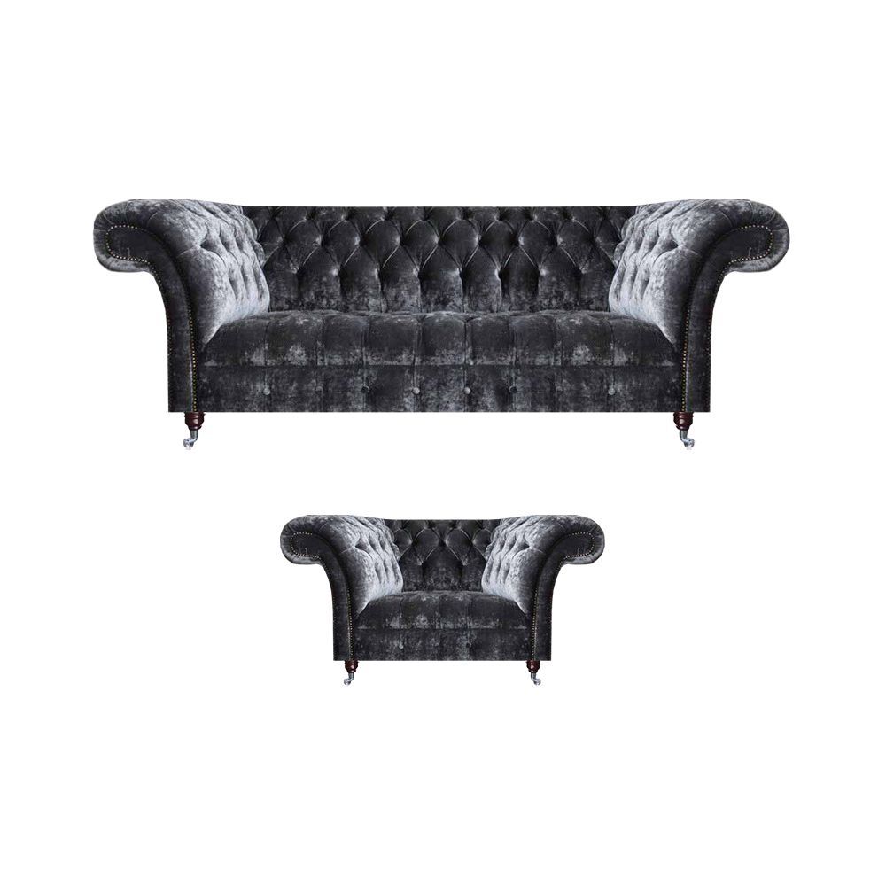 Chesterfield Polstermöbel Wohnzimmer Textil Dreisitzer Edler Sessel 2tlg