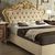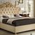 Chesterfield Bett beige Schlafzimmer Holzmöbel Design elegant Polsterung Stoff