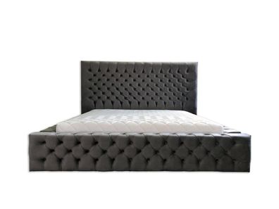Graues Chesterfield Doppelbett Designer Schlafzimmer Edle Polsterbetten