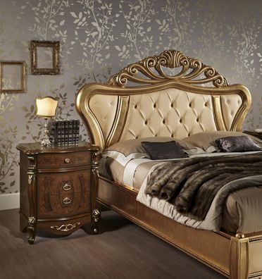 Stilvoller Bett Chesterfield 2x Nachttische Möbel Kleiderschrank Schlafzimmer