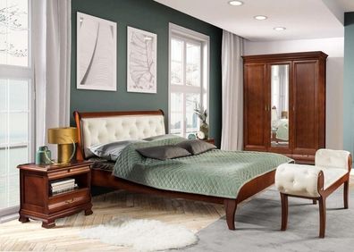 Komplett Schlafzimmer Bett + 2x Nachttische Klassisches Holzmöbel Chesterfield